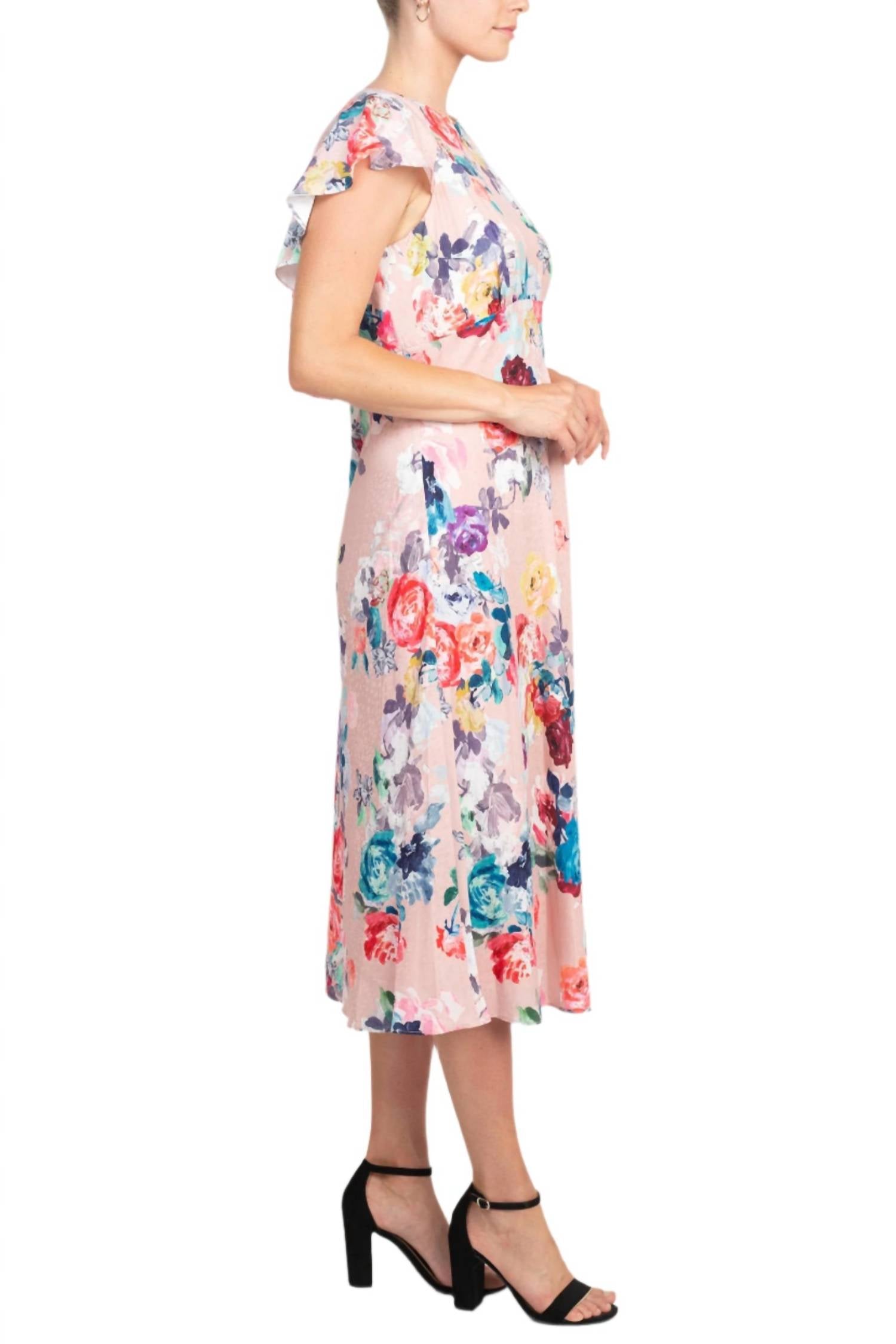 Just add slides or mules and you are good to go. Introducing the Flutter Sleeve Soft Pleats Floral Print Midi Dress by Adrianna Papell, an exquisite choice for weddings and elegant events. This Blush Multi dress features short flutter sleeves and a classic crewneck, designed with an empire waist and soft pleats to enhance its graceful silhouette. Made from 100% Polyester, it showcases a vibrant floral pattern that's perfect for the spring season. Closure: Zip closure. Care: Dry clean only.