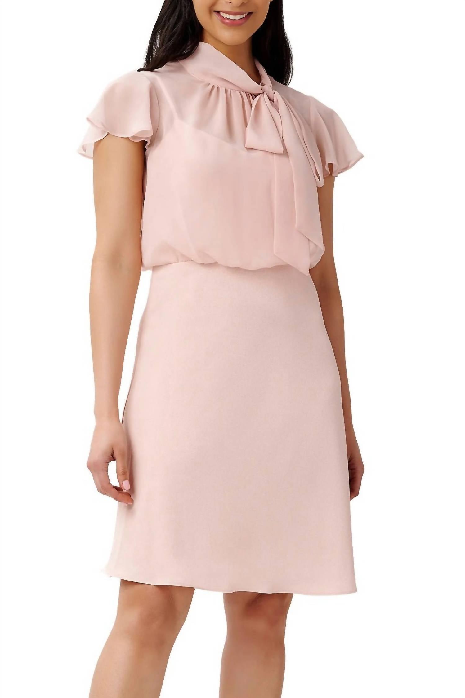 Discover refined elegance in the Adrianna Papell Tie Neck Back Crepe Chiffon Dress, perfect for elevating your daytime events wardrobe. Designed with timeless Joyful Blush plaid & check pattern and feminine cap sleeves, it offers both modernity and charm. Crafted from 100% Polyester, this A-line dress features a sophisticated button closure. Care: Dry clean only. Ideal for special occasions, this piece seamlessly blends tradition with trend.