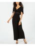 Adrianna Papell Women's Slitted Short Sleeve V Neck Full Length Evening Fit Flare Dress Black Size 4