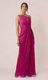 Styled from a liquid metallic fabric| this goddess-like gown from Adrianna Papell stuns with its graceful neckline and draped details.| Back zipper closure| Imported| Lined| One-shoulder neckline; Gown silhouette| Floor-length formal dress