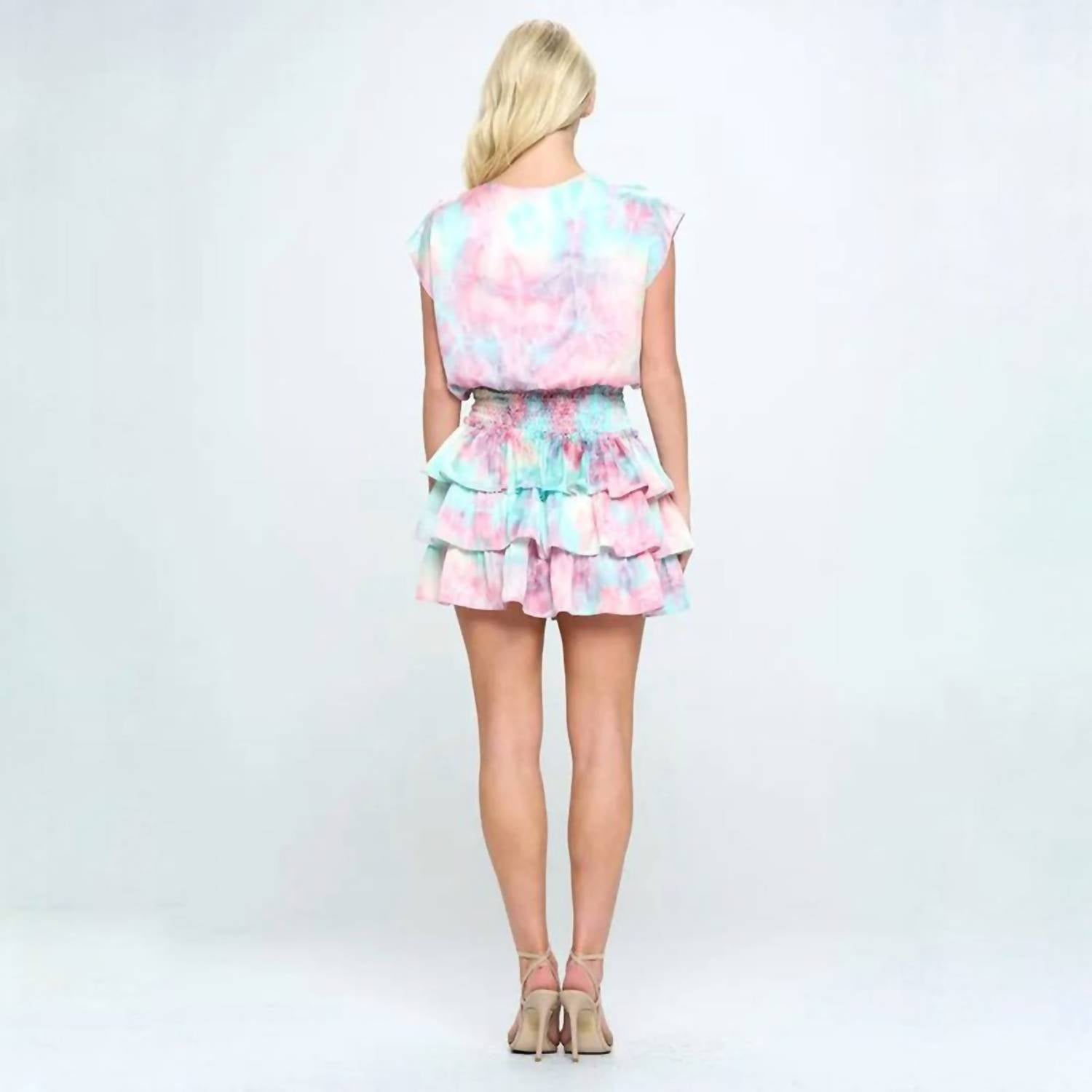 Drop shoulder smock waist tiered dress.