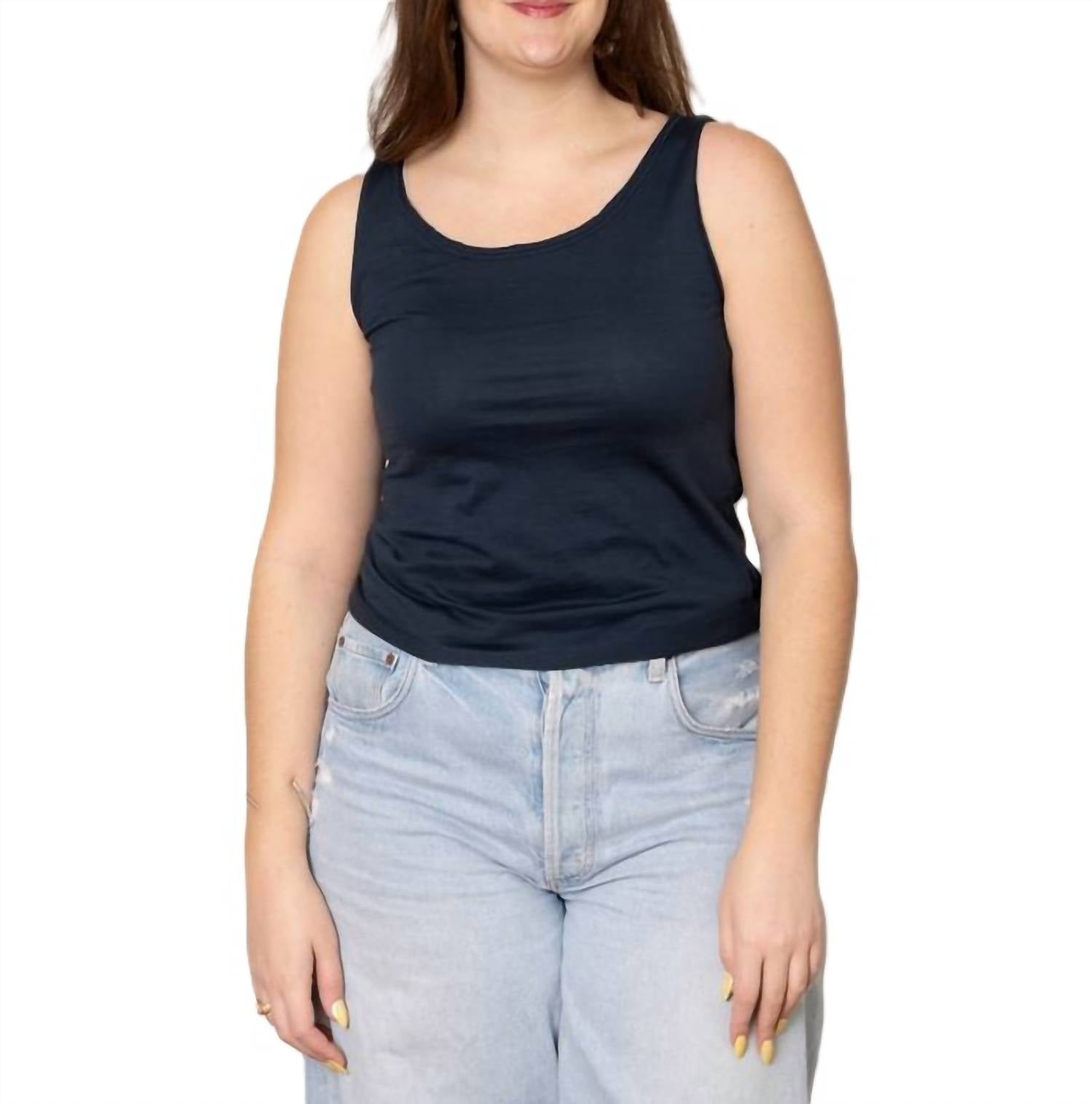 The perfect tank top for those warmer weather seasons. The Rubinette Jersey Tank Top by Aequamente in the color Abyss is an effortlessly stylish piece for women. Featuring a sleeveless design and a scoop neckline, this tank top is crafted from soft cotton, ensuring a breathable and lightweight feel. Perfect for travel, the solid pattern and clean lines offer versatility for layering or wearing solo. With a convenient pull-on closure, it is easy to care for with machine wash and line dry instructions.