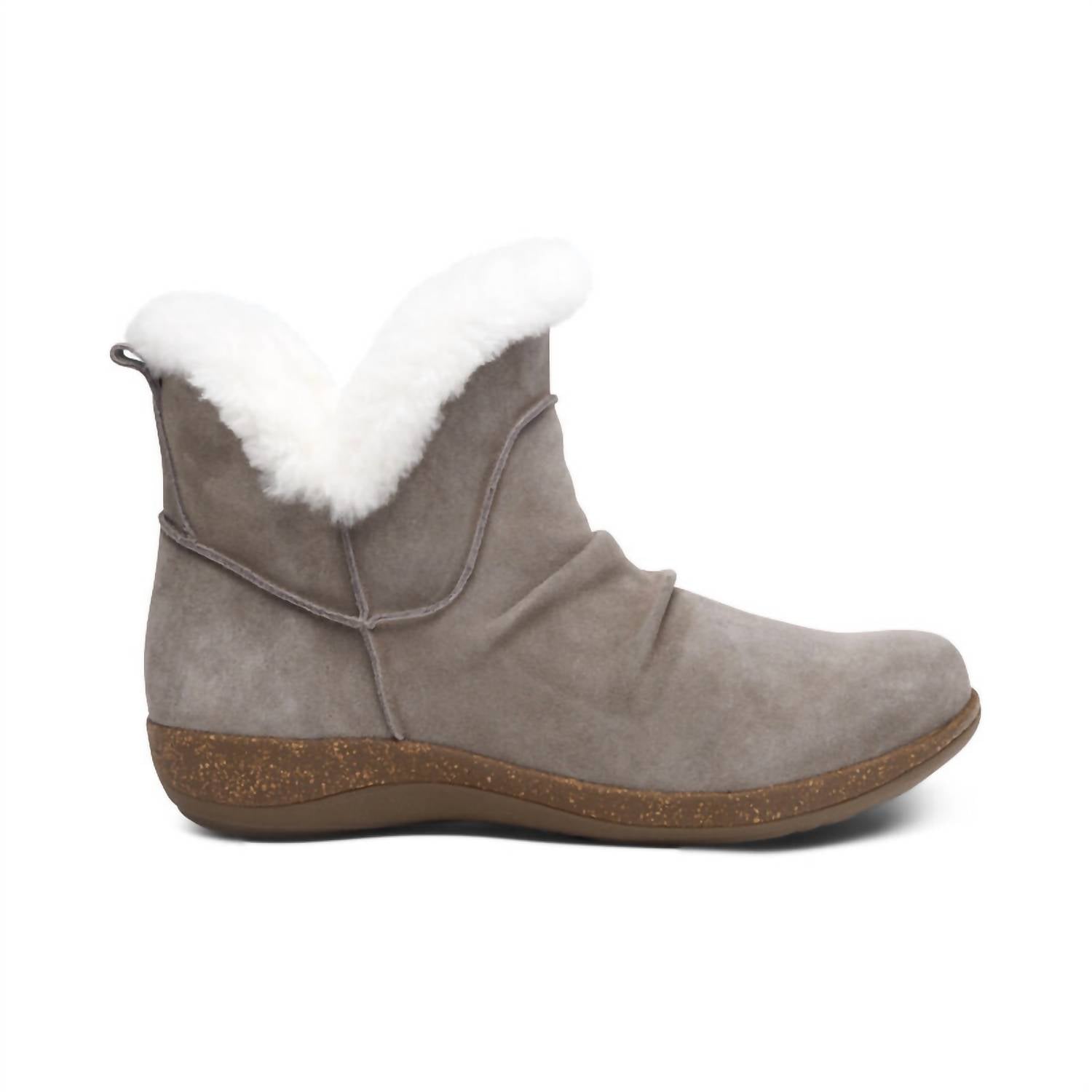 Support and UltraSky™ cushioning. Side zipper. Removable insole. Weatherproof genuine suede. Light-weight cork midsole. Rubber outsole. 1.3" Heel height.