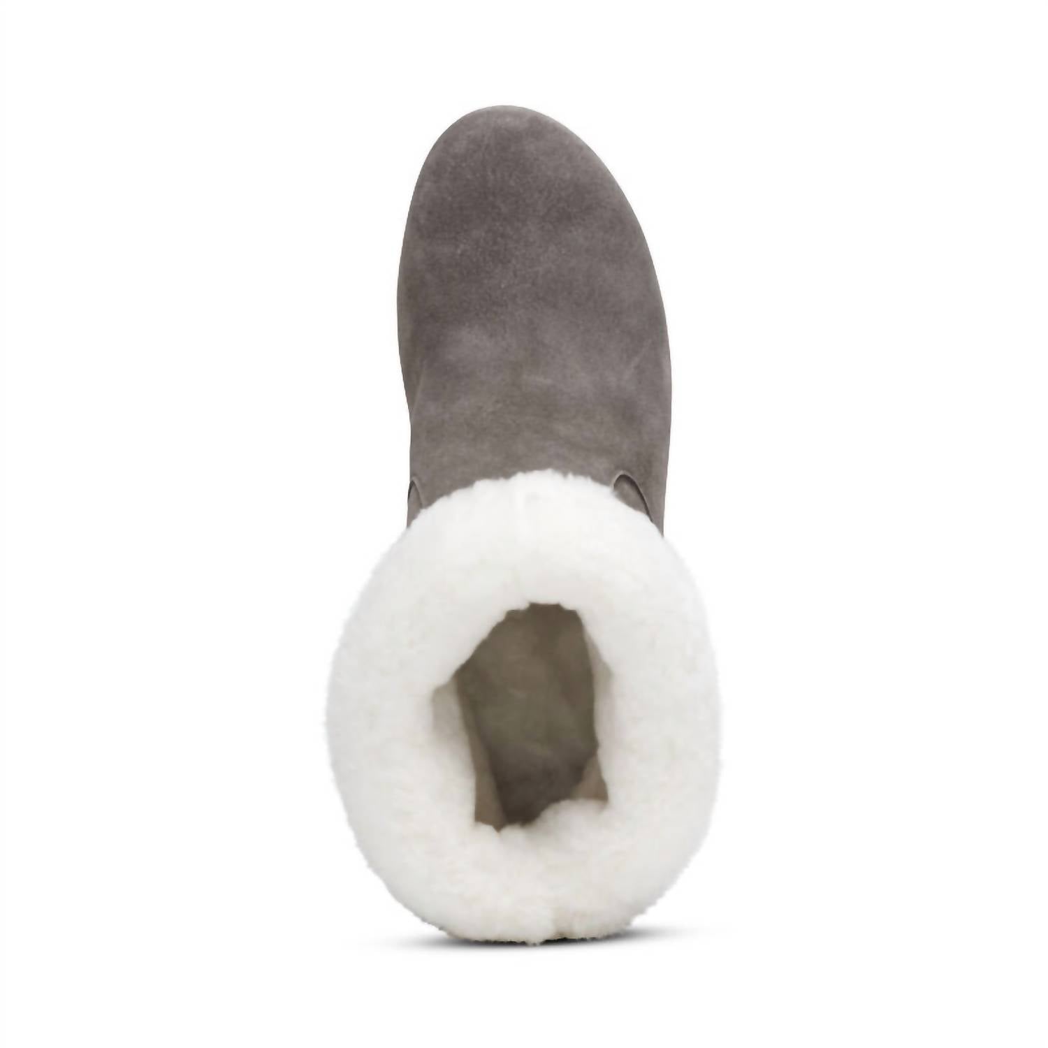 Pull tabs for easy on and off. Weather-friendly genuine suede upper with shearling lining. Ultra-light cork midsole. Rubber outsole for durability. Lug sole for added traction. All materials treated to help protect against rain and puddles. Removable insole. Heel Height: 3.25".