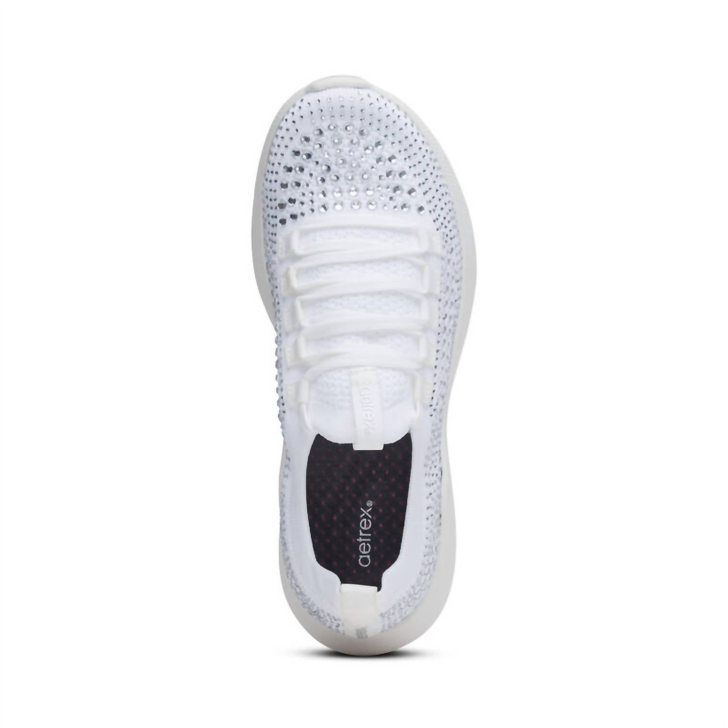 These lightweight kicks provide the comfort you need for long periods on your feet. With pressure relief cushioning, a padded heel, and stretchy knit material, the Carly Sparkle will keep you comfortable on your most active days.