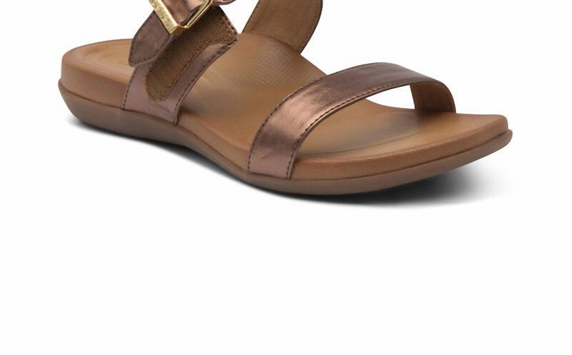 These slip-on sandals with arch support feature pressure relief technology throughout the footbed, adjustable straps, and a water-friendly construction, making them perfect for the beach or the pool. Upper material: faux leather treated with antimicrobial technology to help fight everyday odors. Midsole material: lightweight Ultrasky™ for comfort. Outsole material: rubber for durability. Removable insole: none. Heel height: 1.2".