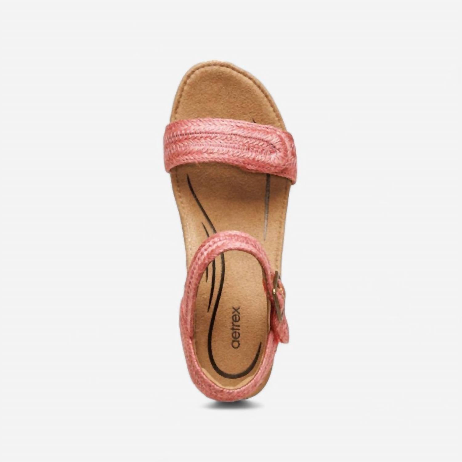 Step into summer in style with the Aetrex Sydney Wedge Sandals in a vibrant raspberry hue, tailored for ultimate comfort and support. Crafted from genuine suede leather, these sandals feature a 3-inch wedge heel with an ultra-light cork midsole, ensuring a chic yet lightweight wear. The design incorporates Aetrex Signature Arch Support and an 0.32-inch memory foam foot-bed for exceptional cushioning and proper body alignment. Closure: Hook and loop closures with a buckle on the quarter strap. Perfect for holiday parties and minimalist trends, these sandals are a go-to for your summer occasions.