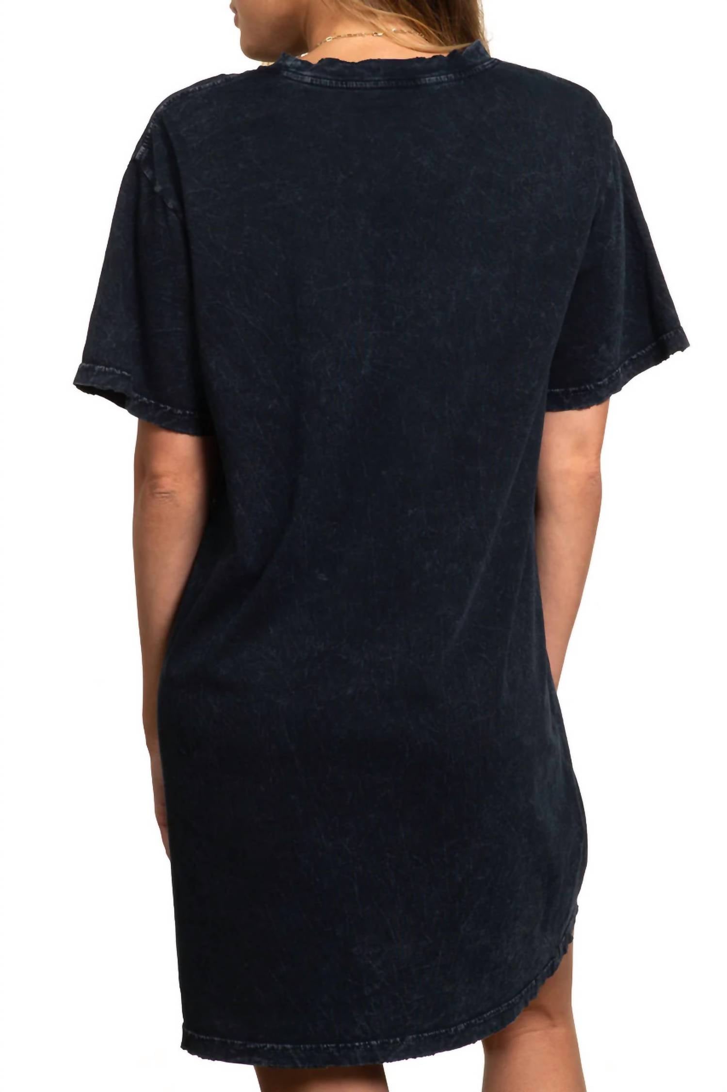 Introducing the Cosmic Wild Short Sleeve Shirt Dress by Affliction, a stylish mini dress in a striking Black Lava Wash. This women's shift dress features a graphic pattern with unique grinding details on the neck, sleeves, and bottom opening, perfect for concert occasions and streetwear style. Designed with a crewneck and pull-on closure for easy wear, it pairs beautifully with your summer wardrobe. Please note, wash and dry instructions are not available.
