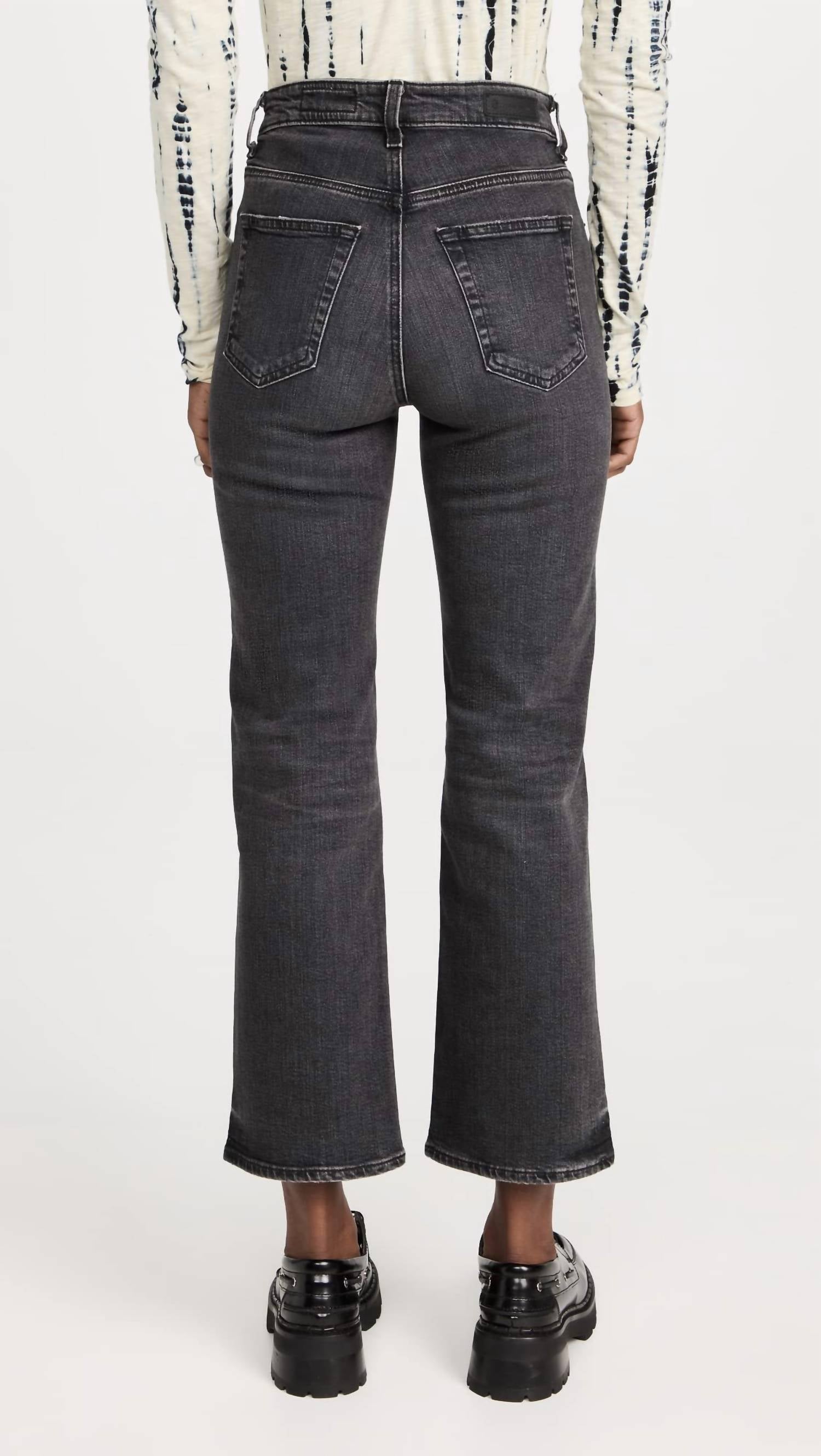 Fit to perfection, we love these high-waist jeans and you will too. Elevate your denim collection with the Kinsley High Rise Crop Jeans by AG Jeans, perfect for a minimalist fall wardrobe. Crafted from a cotton blend, these jeans boast a 10 Years Bonfire wash with subtle details like grinding at pocket edges and crease marks at the hems. The high-rise silhouette and flare leg enhance their flattering fit, with the hem sitting stylishly above the ankle. Closure: Button closure. Composition: 92% cotton, 6% polyester, 2% elastane. Care: Machine wash. Inseam: 27 inches, Rise: 10.25 inches.