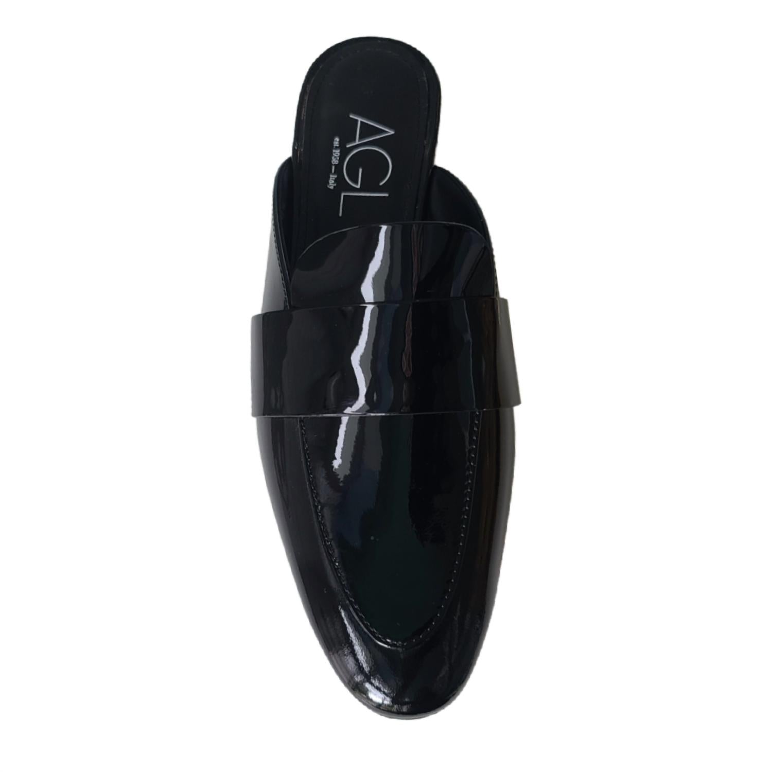 Classicly cute and all-day-wearable. We love this sandal. Elevate your wardrobe with the Women's Costanza Mule Nero Sandals by AGL, showcasing the finest in Italian craftsmanship. These sandals feature a refined patent finish, reminiscent of traditional menswear for a sleek and timeless appearance. Proudly crafted to express quality with a minimalist design that complements any ensemble. Perfect for stylish women who appreciate classic elegance in footwear.