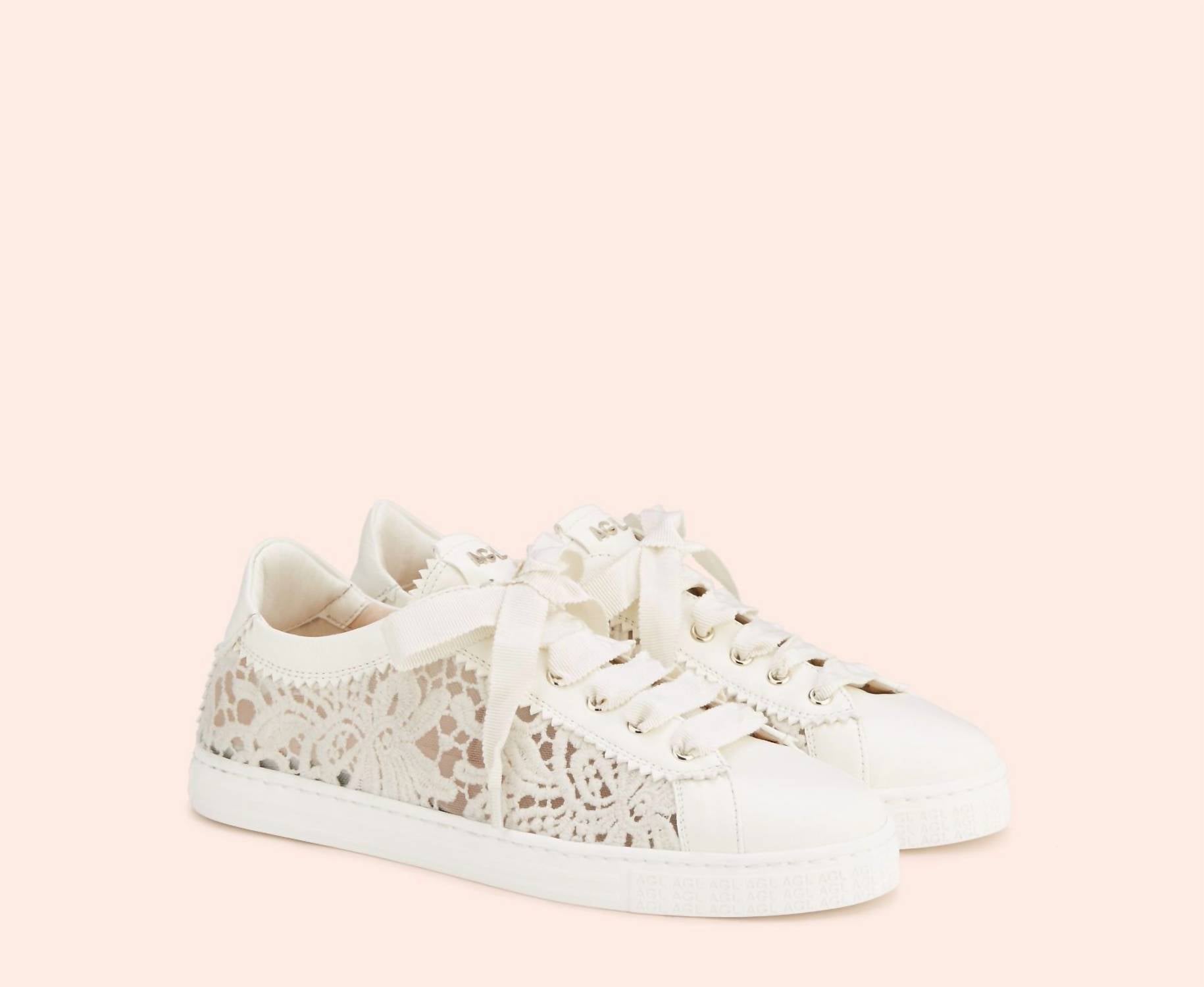 Get your daily steps in with these adorable sneakers. Experience the perfect blend of tradition and modernity with the Women's Sade Sneakers by AGL, a standout in Off White. These sneakers feature a leather upper complemented by micromesh and cotton lace inserts, elevating your casual wardrobe. With a comfortable 2 cm natural rubber sole, they offer both style and support for all-day wear. Crafted with meticulous attention to detail, these sneakers are the epitome of contemporary femininity.