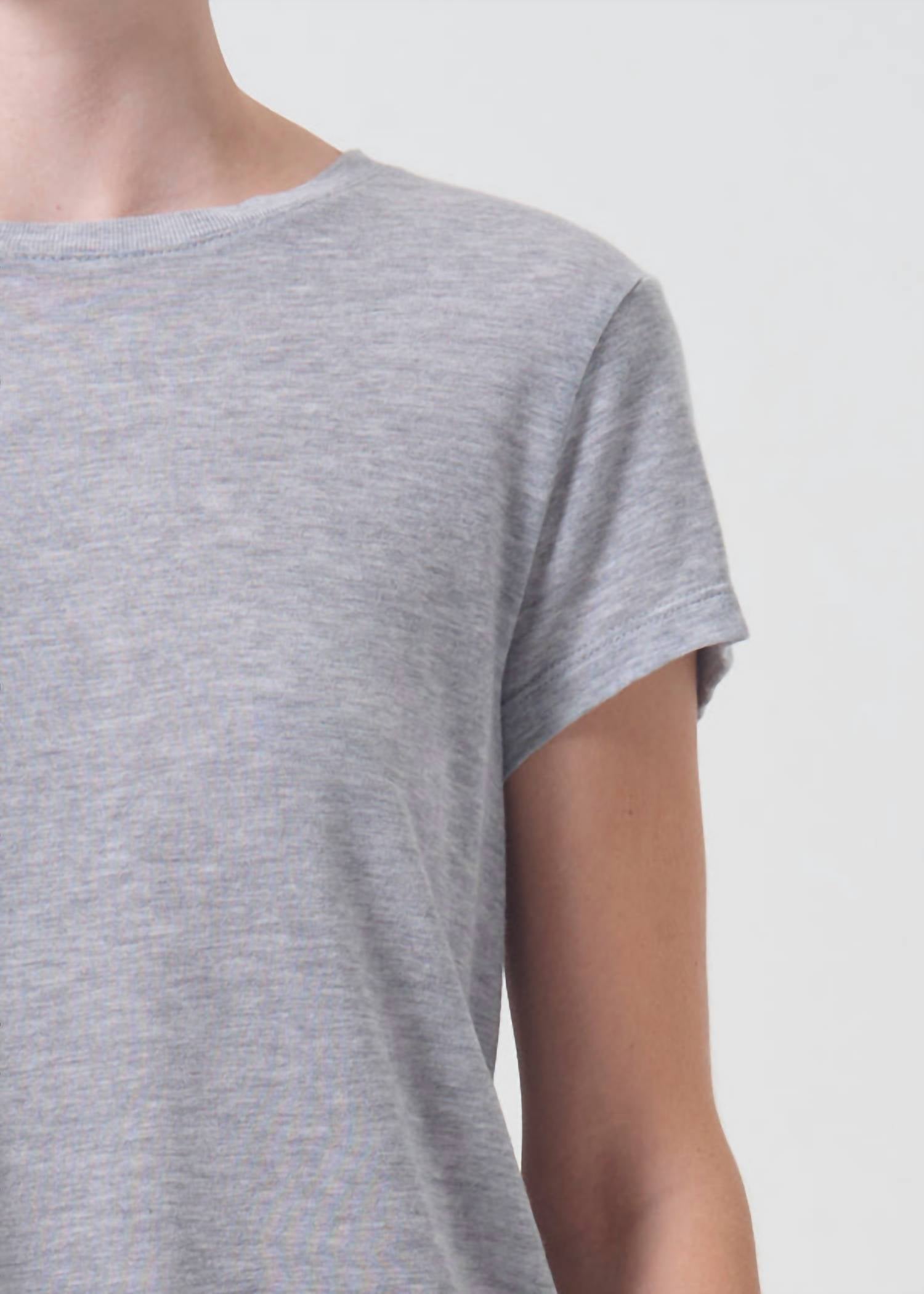 Look no further, you just found your perfect tee! Your go-to cropped essential in Grey Heather. Crafted from 100% Lyocell. Offering a breathable and ultra-soft touch. With a garment length of 19.75 inches. Features a classic crewneck design and a pull-on closure for easy wear. Machine wash cold to maintain its lightweight feel and perfect fit.