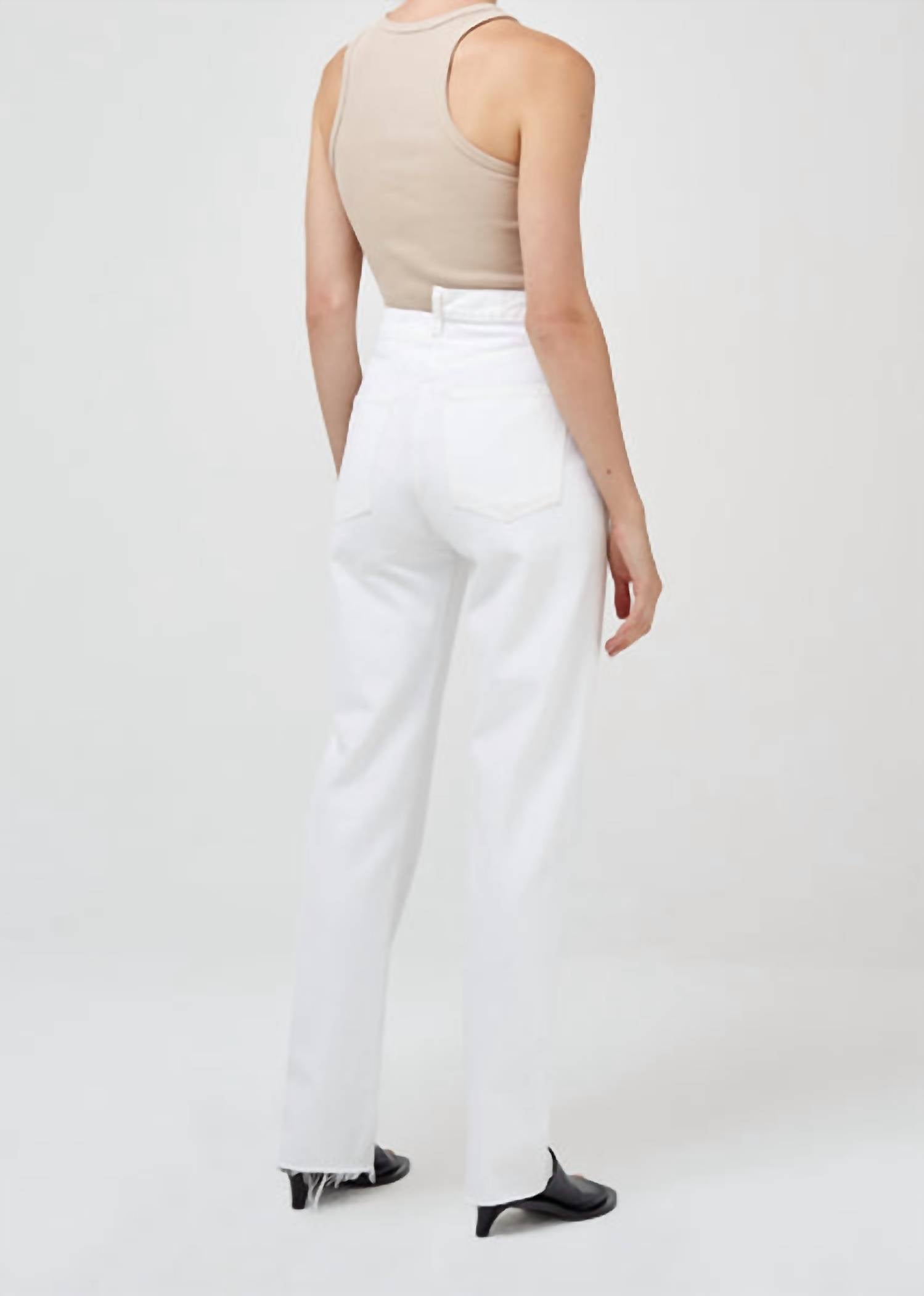 Pair these straight leg jeans with flats, sandals or even heels! You can't go wrong. Criss cross button front detail. Upsized jean. 100% Cotton. Intended to be oversized. Size down for a higher, closer fit.