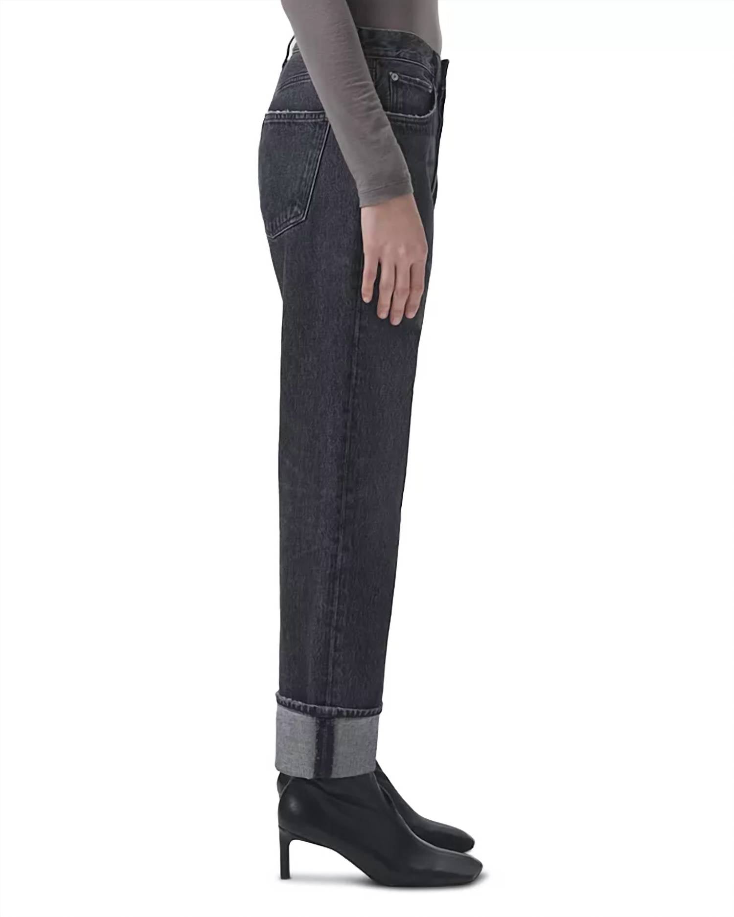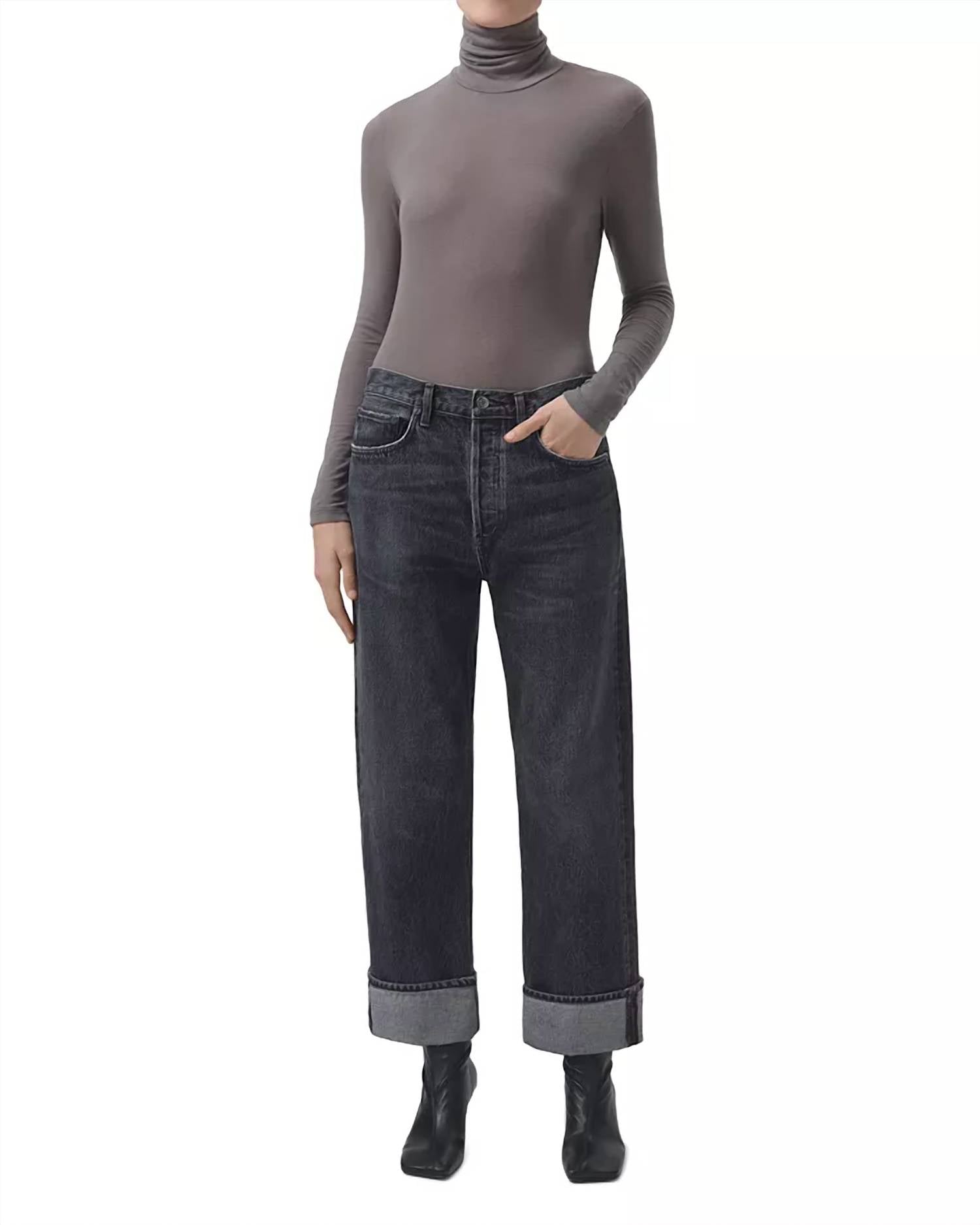 High-waist is here to stay and we especially love this style. Elevate your wardrobe with the Fran High Rise Wide Leg Jean by AGOLDE, offering a relaxed fit perfect for any occasion. These jeans feature a 12.25" rise and a 26.5" inseam, crafted from 100% regenerative cotton for a sustainable and comfortable wear. Enhanced with a dark wash and subtle whiskering, they bring a retro-inspired style with their wide-leg silhouette and button fly closure. Care: Machine wash cold inside out with like colors and tumble dry low.