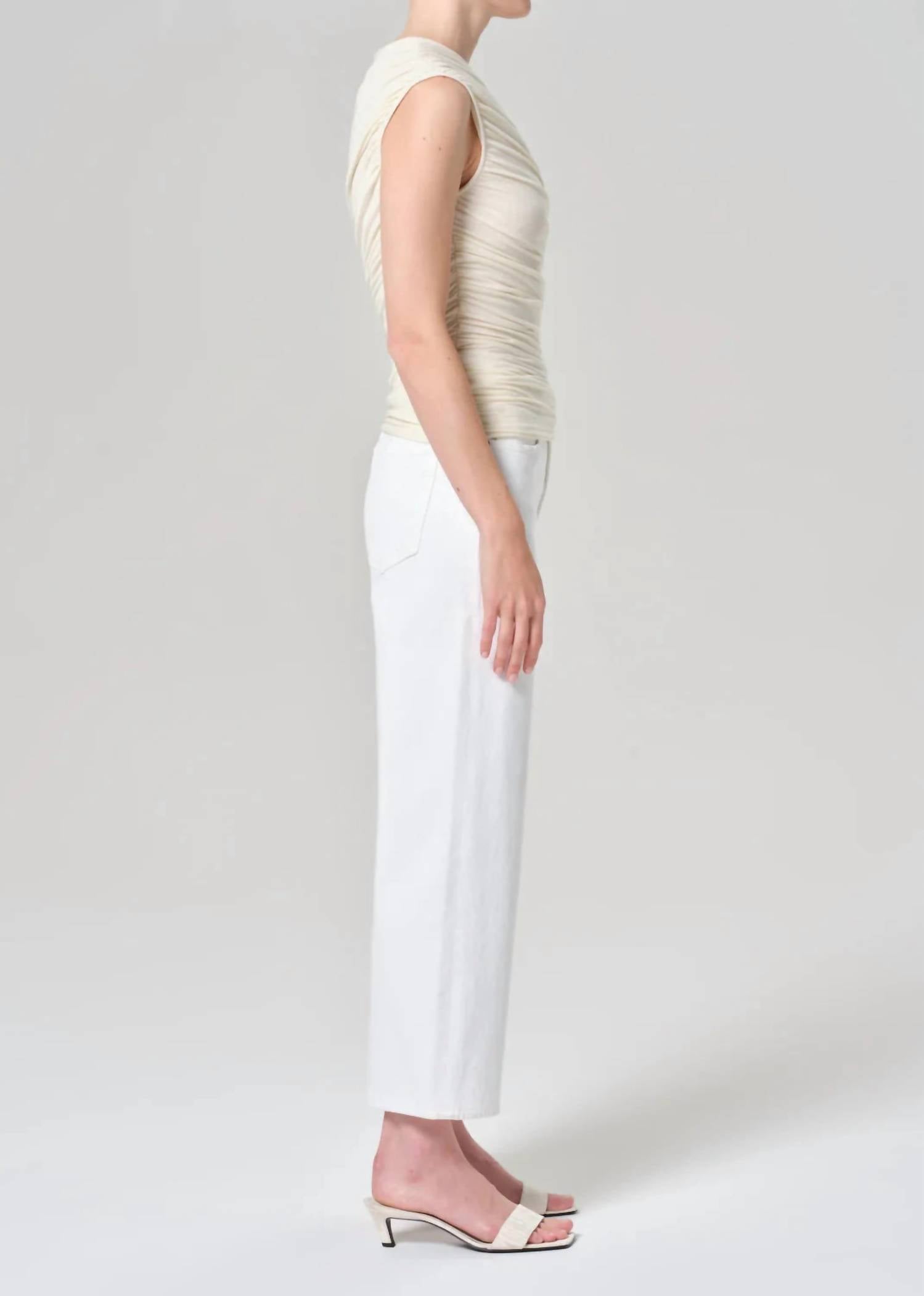 Pair these straight leg jeans with flats, sandals or even heels! You can't go wrong. Meet the Harper Jean by AGOLDE, showcasing a relaxed fit with a mid-rise and a stylish straight yet subtly cropped wide leg design. Crafted from a Cotton Blend with 98% Cotton and 2% Elastane, these jeans offer midweight comfort stretch with exemplary recovery. The clean crisp white design, complemented by finished hems, features a zip fly closure for a sleek look. Care is simplified with machine wash cold inside out and low tumble dry, perfect for a comfortable and durable wear.