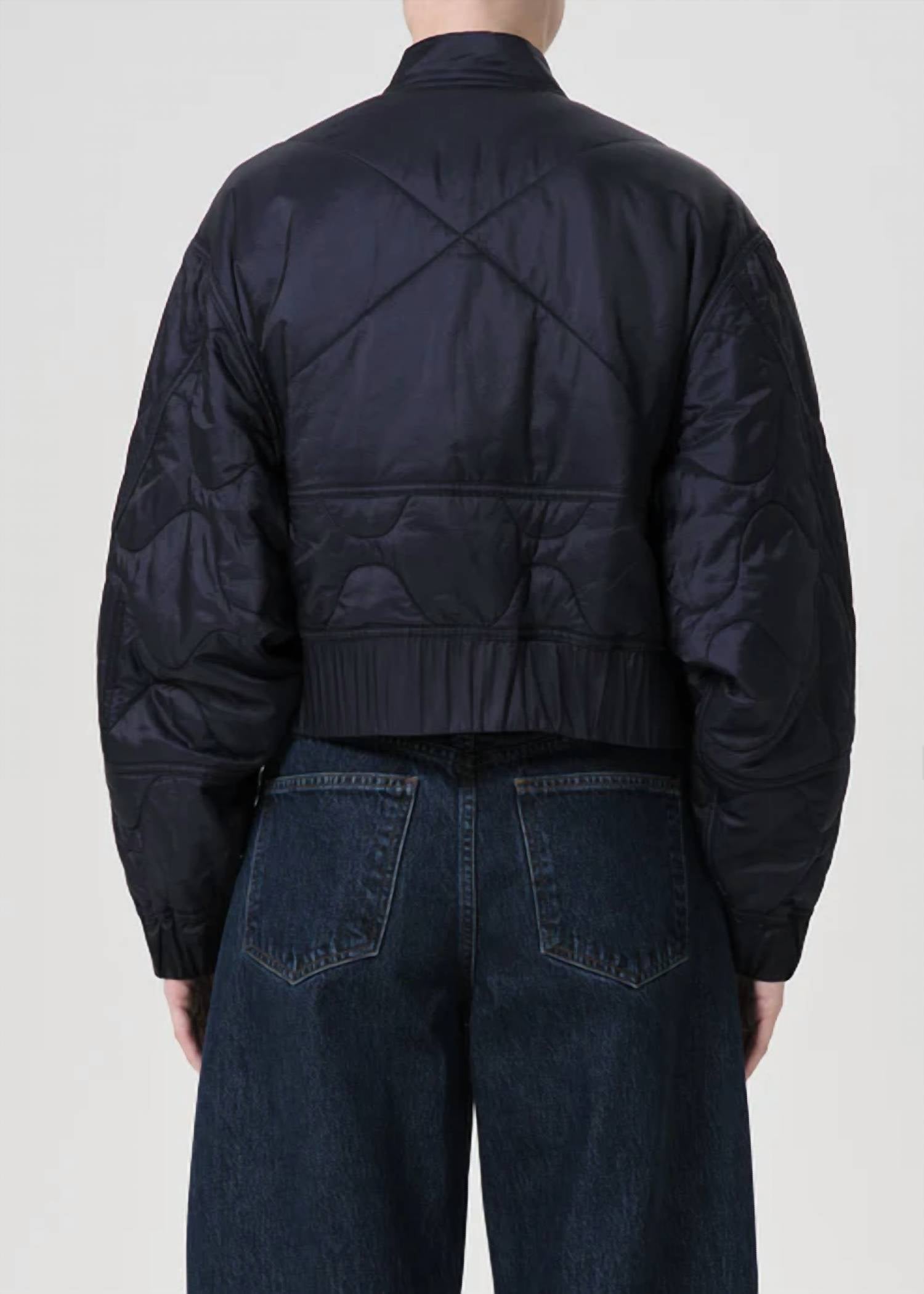A riff on your favorite classic bomber jacket. Seamlessly combines style and sustainability. Bomber-inspired jacket. Features a distinctive silhouette with voluminous long sleeves and a versatile, textured pattern. Crafted from 100% nylon. Designed with a crewneck, it includes practical pockets and a secure zip closure. For care, simply dry clean only.