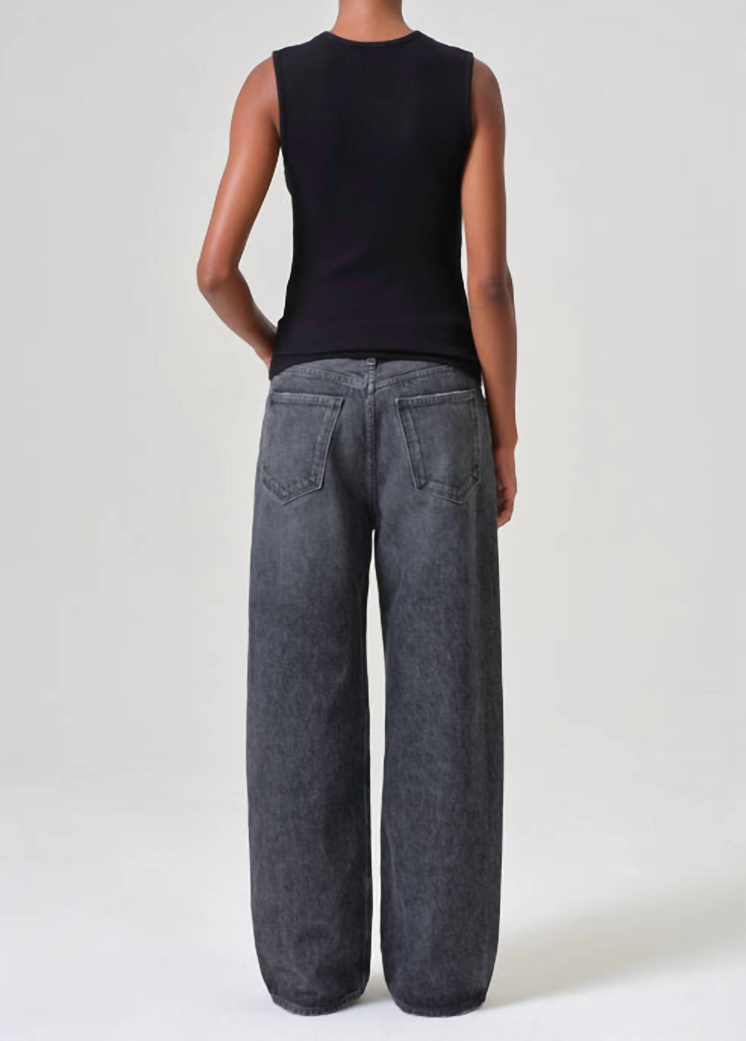 Pair these wide leg jeans with mules, slides or your favorite strappy sandals. Experience ultimate comfort and style with the Agolde Low Slung Baggy Jeans, a must-have in the "Ditch" color for women. These jeans feature a comfort fit with a low rise of 12.5", complemented by a trendy wide leg design with a 30.5" inseam. Crafted from premium Organic Cotton, they boast a solid pattern and an ultra-relaxed silhouette that sits low on the hips. Closure: Button closure. Care instructions: Machine wash and tumble dry for ease.