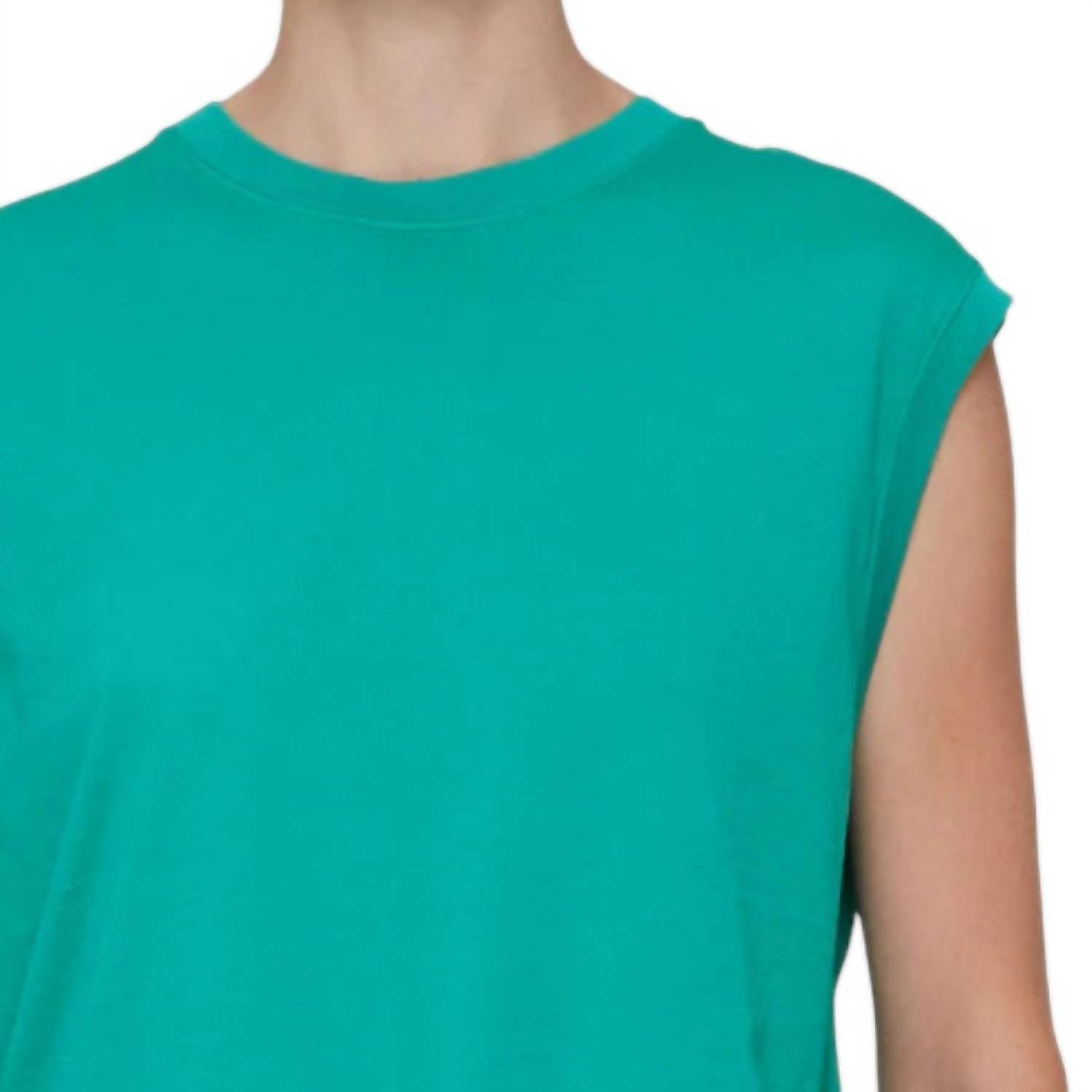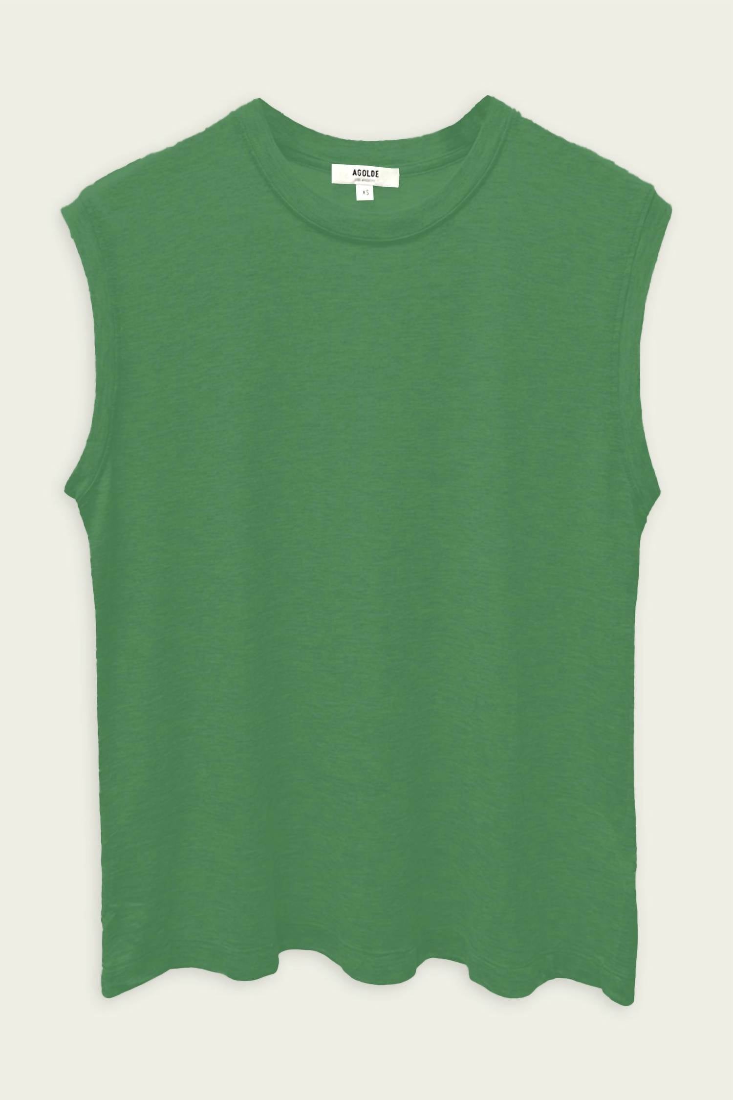 This muscle tee isn't just for the gym. Pair it with your favorite jeans for the perfect casual-cool vibe. Introducing the Raya Muscle Tee by AGOLDE, a stylish piece designed for both comfort and sustainability. This sleeveless tee, available in an airy "Air Freshener" hue, is crafted from 100% cotton, ensuring a relaxed fit with its ribbed sleeves and neckline. Made with a solid pattern, this muscle tee offers a pull-on closure and features a classic crewneck style. Care instructions include machine wash cold. The model is 5'9" and is wearing a size small.