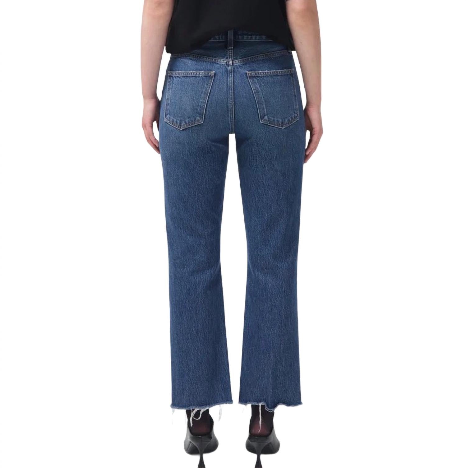 If you're looking for boot-cut, this is the jean for you.Button fly, five-pocket silhouette with contrast stitching, silver-tone hardware, and belt loops. Faded and whiskered blue wash, bootcut-leg with frayed hem. 100% organic cotton. Fits true to size. High rise: 11.5", inseam: 29.5", leg opening: 17.5" (size 26). Machine wash. Made in Turkey.