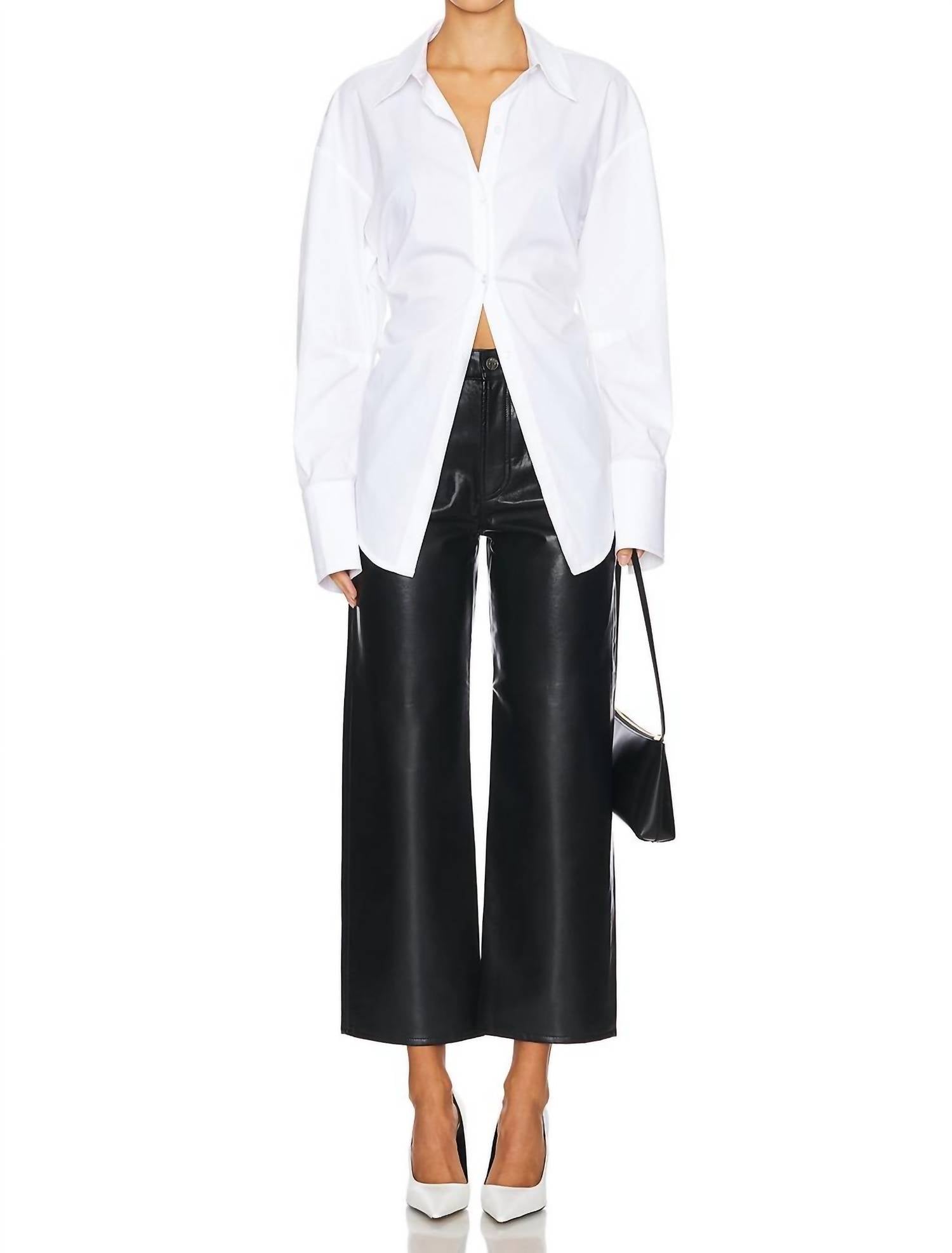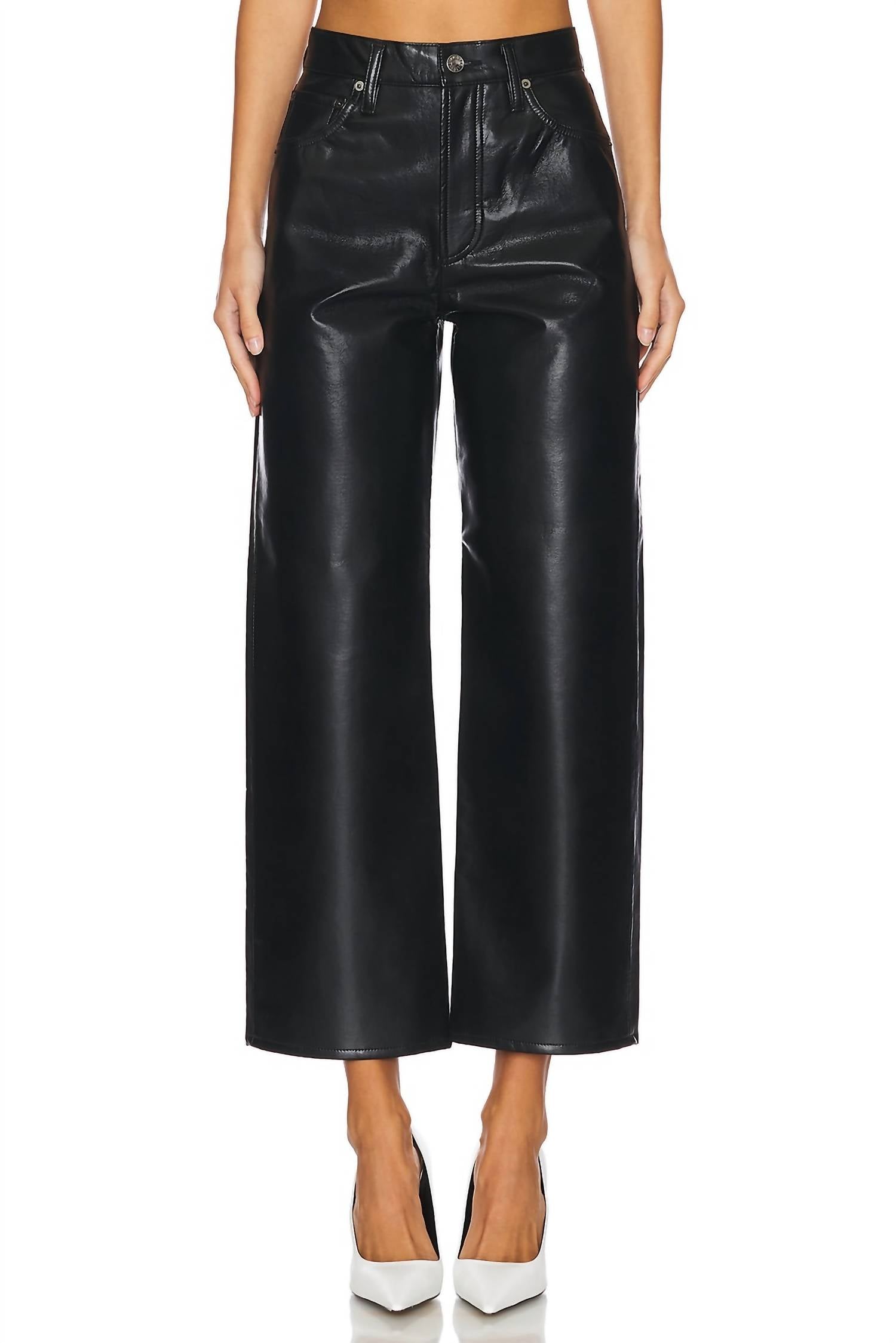 Fit to perfection, we love these high-waist jeans and you will too. Introducing the Ren High Rise Straight Pants by AGOLDE, crafted from 50% recycled leather, 30% polyurethane, 10% viscose, 10% polyester, for a polished look. These chic pants is perfect for elevating any ensemble. Made in the USA with a convenient zip closure and functional pockets, they offer both style and practicality. Care instructions include dry cleaning and line drying to ensure longevity of the material.