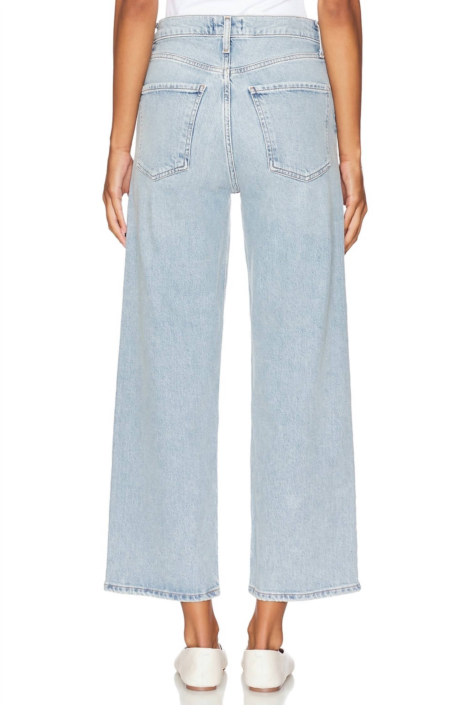 A flattering silhouette that's suprisingly versatile. Elevate your denim collection with the Ren High Rise Wide Leg Jeans by AGOLDE, presented in the classic Groove color. These women's jeans boast a solid pattern and are crafted from a comfortable cotton blend, ensuring both durability and style. Featuring a button closure and convenient pockets, they promise practicality while enhancing your wardrobe. Care is simple: machine wash and tumble dry.
