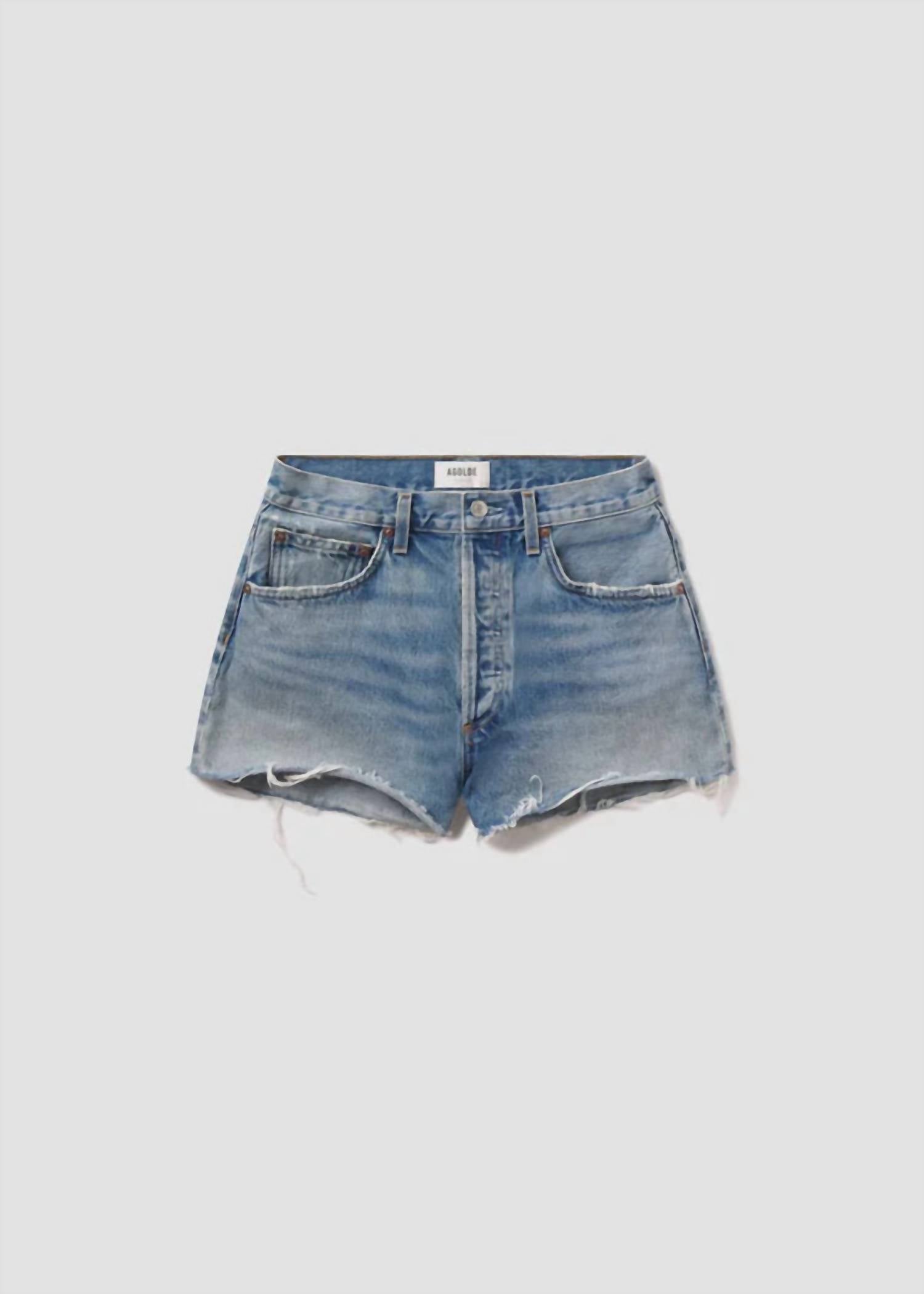Not only cute but extremely comfortable. The jean shorts you will be reaching for all season long. Introducing the AGOLDE Ridley Short, a chic piece in a solid chant color, embodying a high, contoured fit with a subtle curved raw hem for a vintage appeal. Crafted from 100% regenerative cotton, it offers sustainability without compromising on style. Button closure. Machine wash cold inside out. This women's jean short is designed with functional pockets.