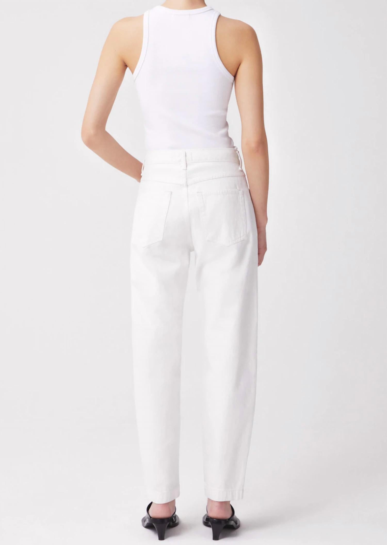 Pair these straight leg jeans with flats, sandals or even heels! You can't go wrong. Introducing the Tapered Baggy High-rise Jeans by AGOLDE, perfect for those who value style and comfort. These relaxed-fit jeans feature a tapered leg and a high-rise waist with a 31" inseam and 11.5" rise, making them ideal for pairing with tucked-in tops. Crafted from 100% cotton, these jeans are made in Turkey and include practical pockets for everyday use. Machine wash cold inside out with like colors, tumble dry low.