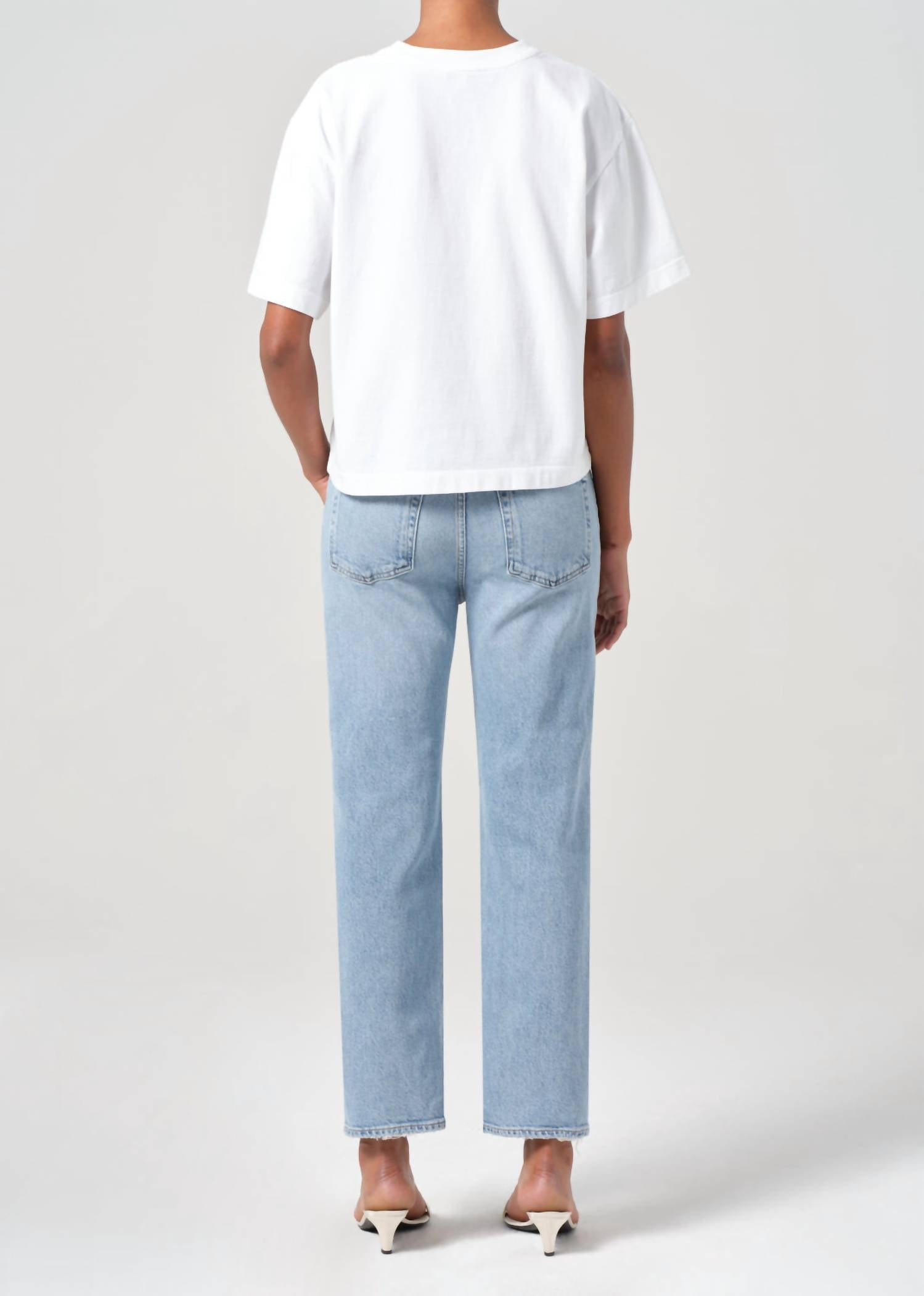 Introducing the Valen Jean by AGOLDE, a minimalist staple crafted for contemporary style. These women's straight leg jeans feature a regular fit and a mid-rise waist, effortlessly complementing your silhouette. Made from a durable 99% Regenerative Cotton/ 1% Elastane blend in a stylish light wash, they come with a practical zip closure and functional pockets. Care is simple with machine wash and tumble dry instructions. With an inseam of 28.5 inches, these jeans are perfect for embracing the holiday party season.