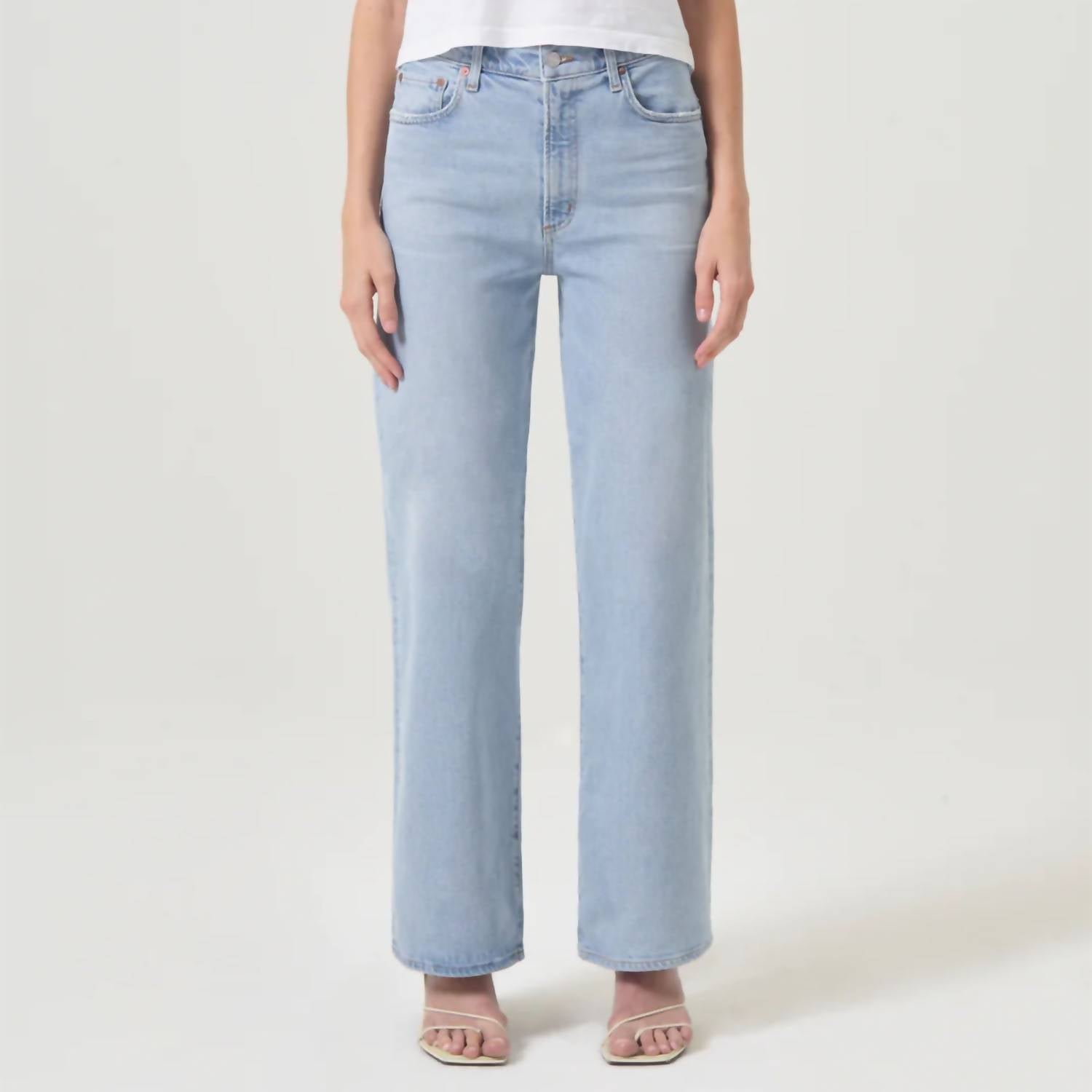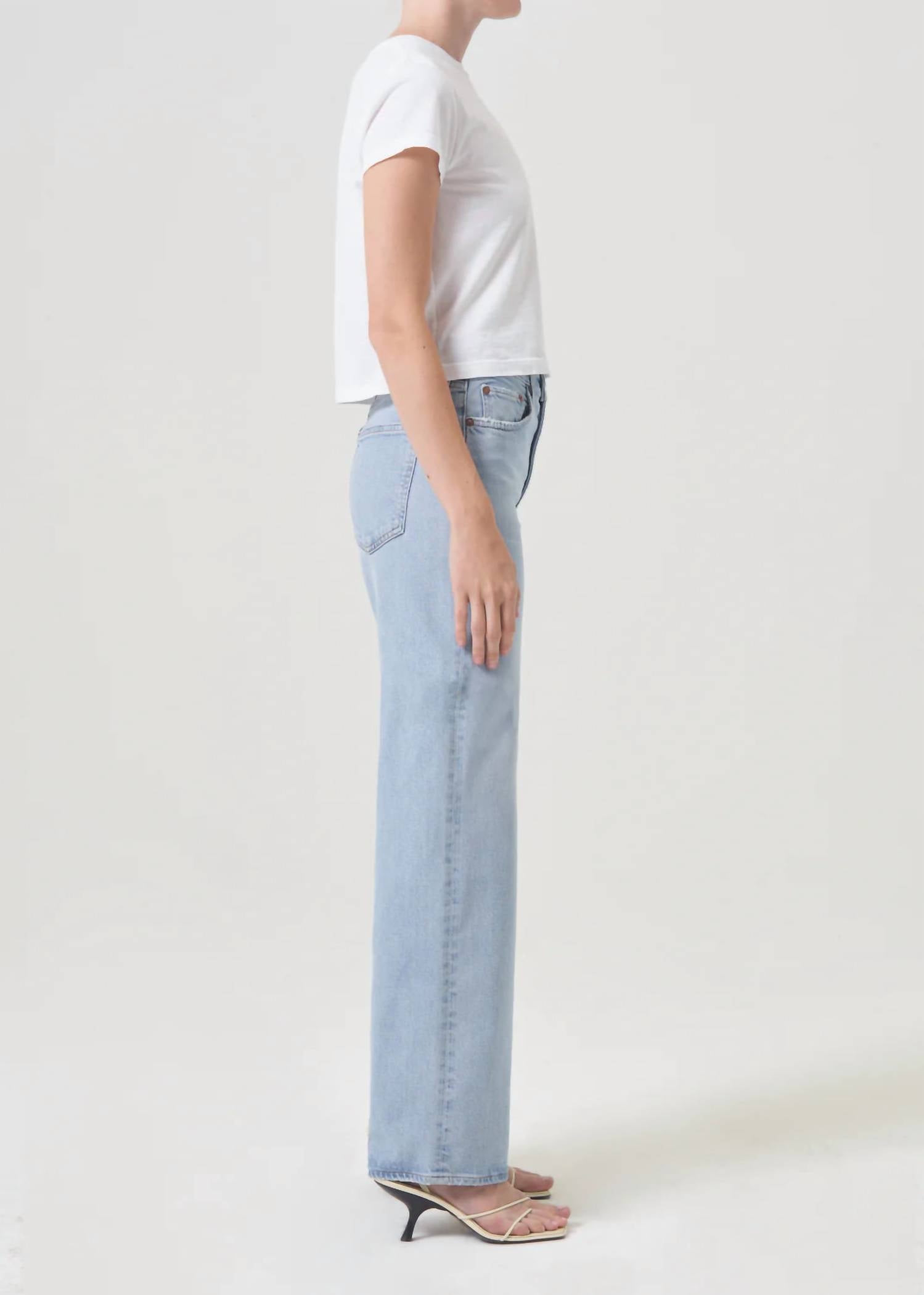 Just as cute as they are comfortable. Discover the Women's Harper Pant by AGOLDE, crafted for those who appreciate style and comfort. Made from a cotton blend, this piece combines 59% organic cotton, 40% rayon, and 1% elastane, offering a relaxed mid-rise fit and a flattering square top block silhouette. With a light indigo shade and a timeless wide leg design, these pants feature a zip closure, an 11 1/4" rise, a 32" inseam, and a 19 1/2" leg opening, ensuring a versatile wear. Made in Turkey with imported materials, they promise uncompromising recovery and comfort, while machine washing inside out in cold water is advised to retain their form and color.