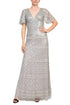 Aidan Mattox - V-neck Sequined Piping Detail Mesh Gown
