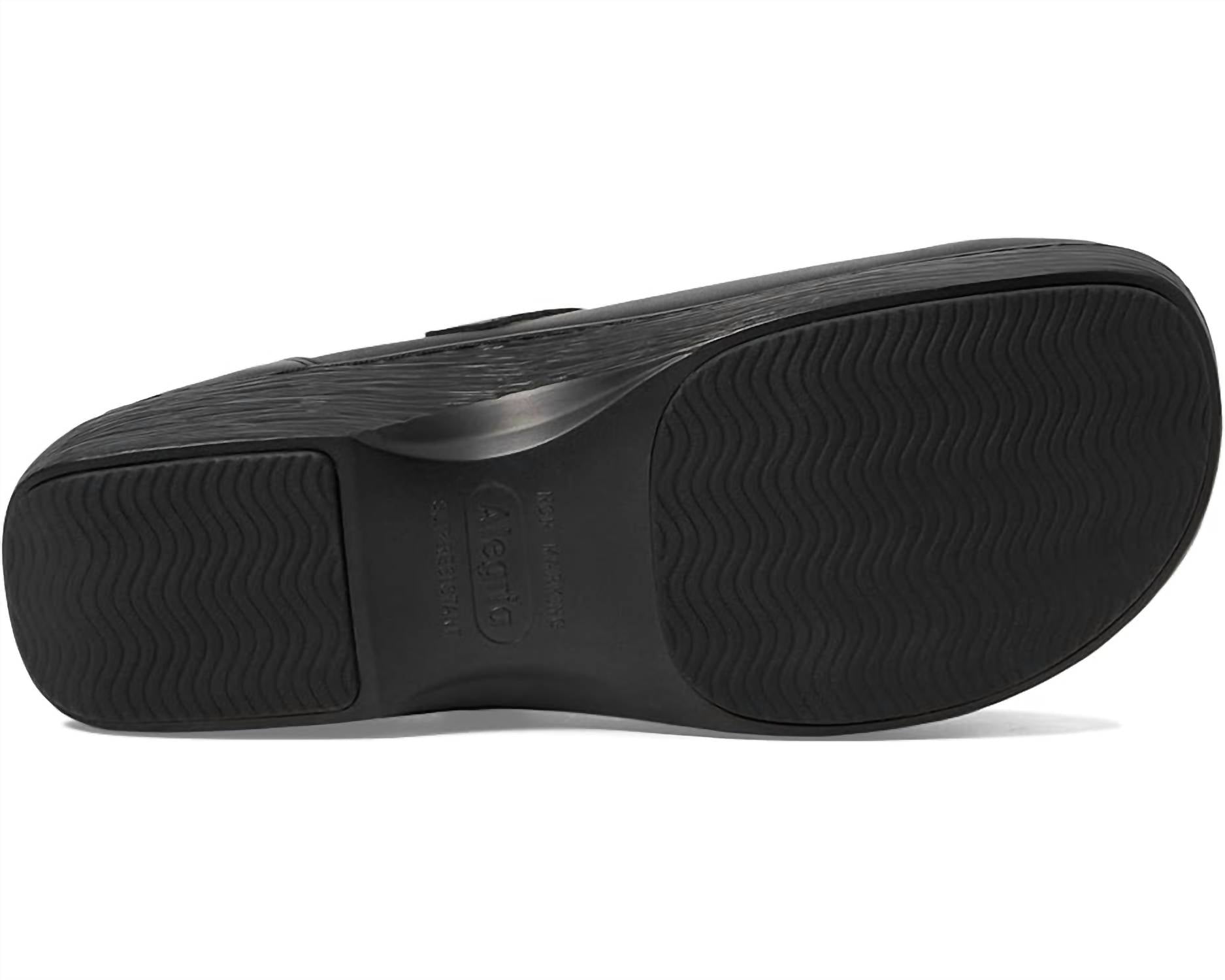 Stylish, comfy, and versatile. We can't find anything wrong with these. Introducing the Alegria Opheliah Clog Shoes, a unique blend of mary jane and clog styles in sleek black. Designed with a low 1" wedge heel and a comfortable round toe shape, these shoes provide both style and support. Enjoy the added convenience of a removable footbed, allowing for a customized feel with each wear. Perfect for women seeking comfort and style, these clogs are an essential addition to any casual wardrobe.