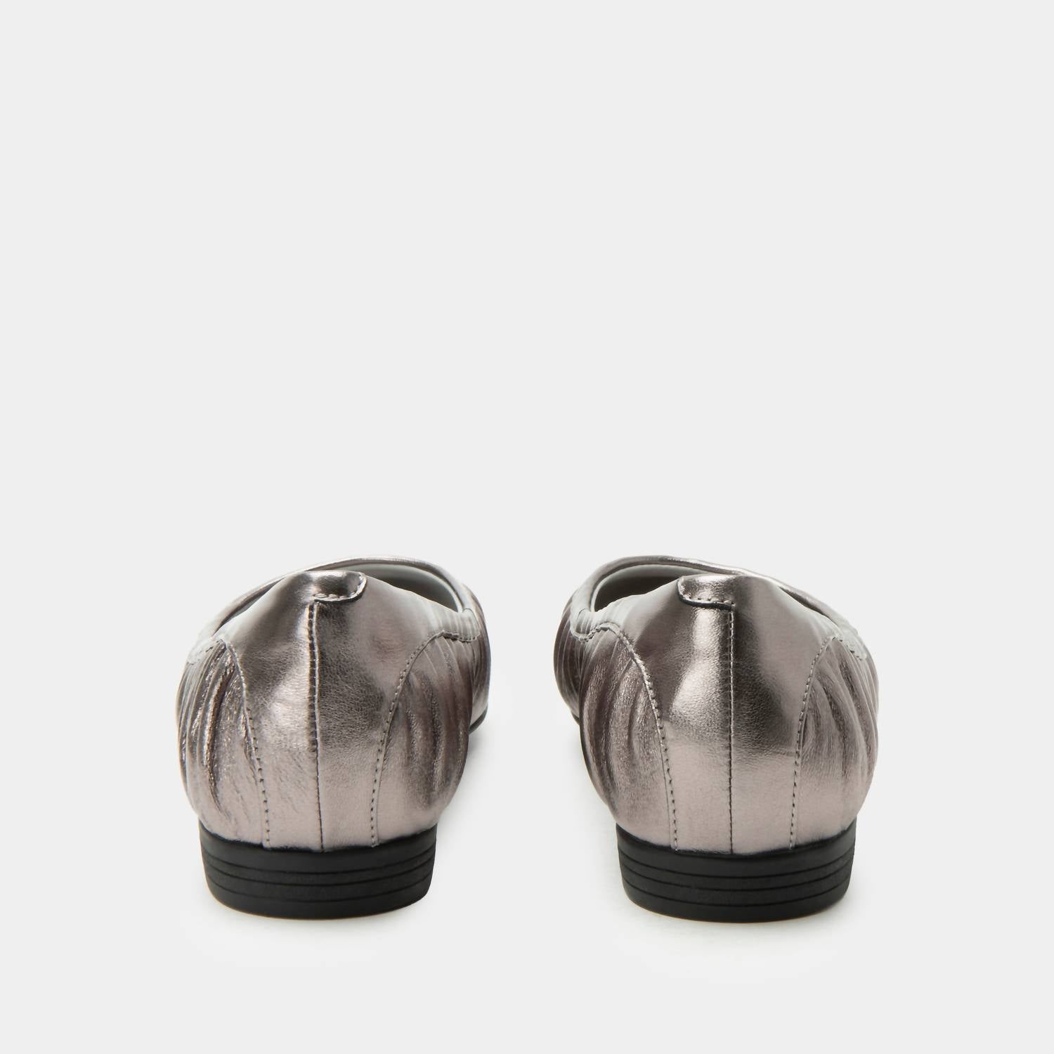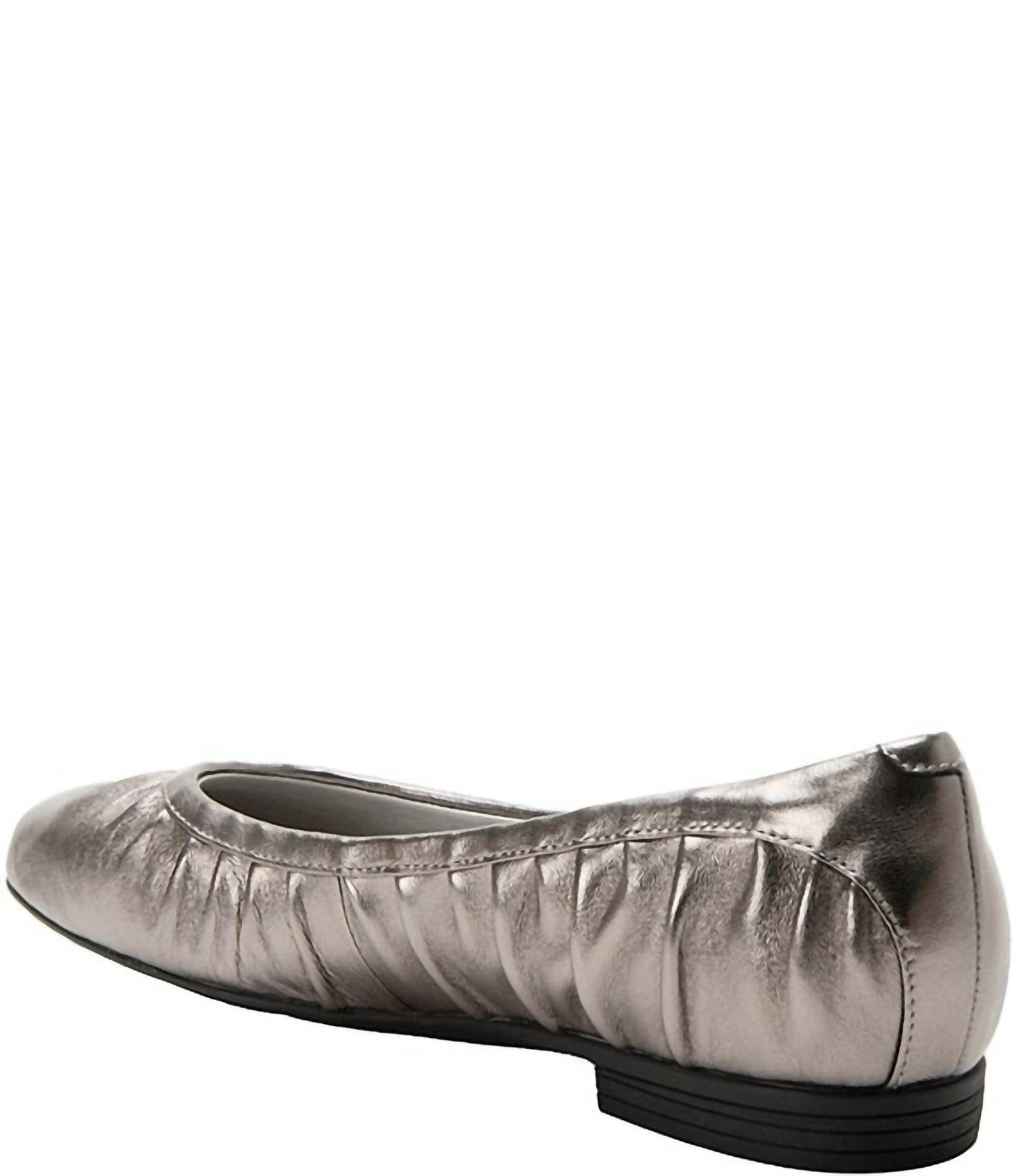 Discover the Women's Beka Pleated Leather Ballet Flats by Alegria, a sophisticated and versatile choice for any minimalist wardrobe. Crafted from leather, these flats feature a unique pleated upper detail that adds texture and visual interest, paired with a slip-resistant outsole and a round toe. With a heel height of 1", robust arch support, and a Signature Arch™ contoured footbed, these shoes promise long-lasting comfort throughout the day. Perfect for engagements, these pewter flats are designed for effortless style and practicality.