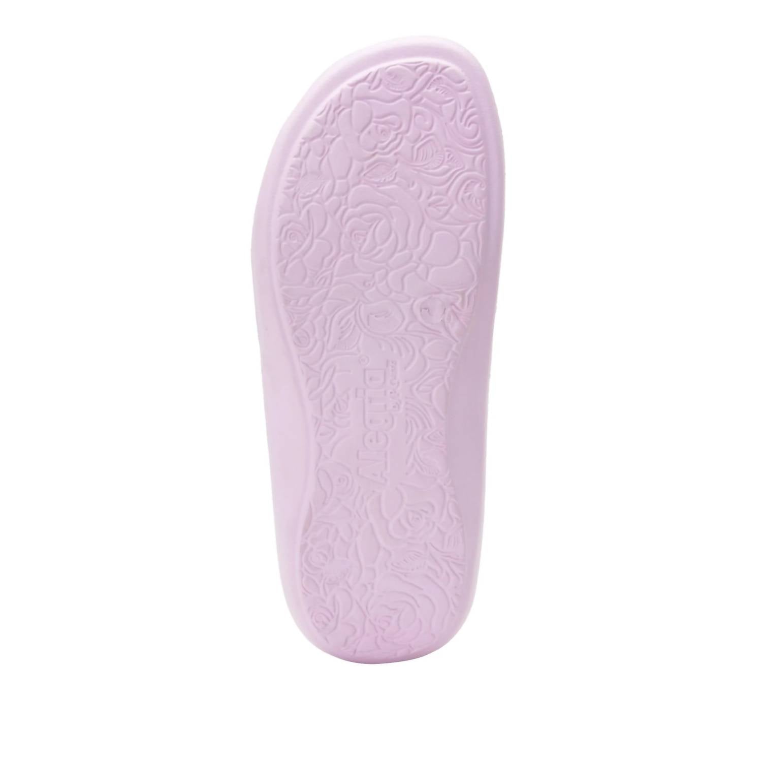 Classicly cute and all-day-wearable. We love this sandal. Step into summer with the Alegria Women's Ode Sandal in a striking purple Fierce animal print. Crafted from lightweight EVA, this one-piece thong sandal boasts built-in molded arch support and a recovery outsole with a rocker bottom for a responsive bounce and balanced pressure distribution. The 1" flat heel and open toe design make it the perfect choice for a vacation or warm-weather outing, ensuring superior grip with every step. Ideal for medium-width feet, this sandal is engineered for enduring comfort.