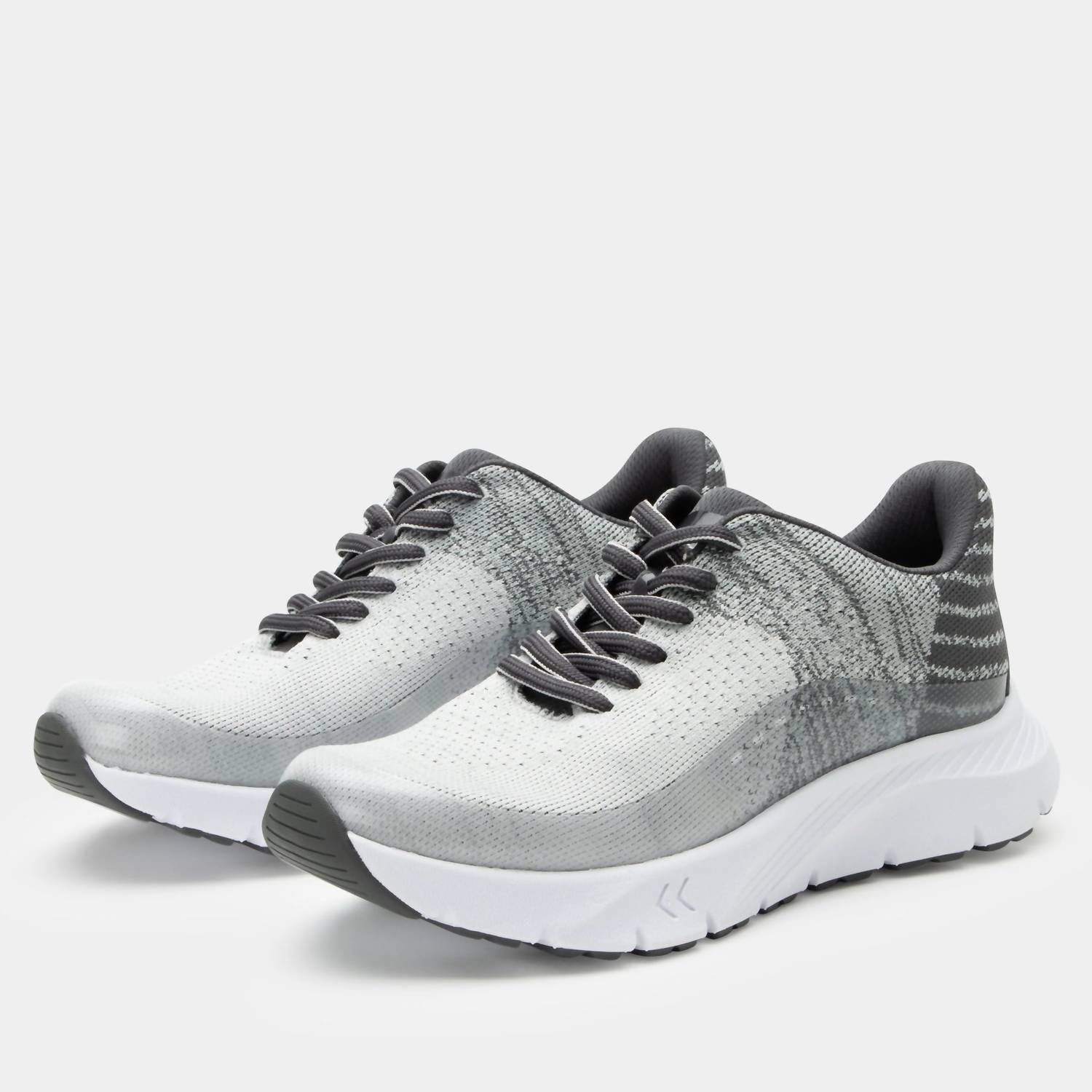 When fashion and function come together seamlessly. Experience comfort and style with the Women's Revl Running Sneakers by Alegria, crafted for the athleisure trend in a chic Ombre Grey. Designed with a breathable Dream Fit® knitted upper and seamless heat-pressed mudguard, these sneakers ensure a perfect fit and finish. They include a removable footbed composed of cork and polyurethane for ultimate support, nestled on an ultra-lightweight ReBounce™ EVA outsole with slip-resistant rubber tread. These APMA-accepted shoes feature adjustable laces, built-in arch support, and a 1.25" flat heel, making them ideal for fitness or workout occasions during the summer season.