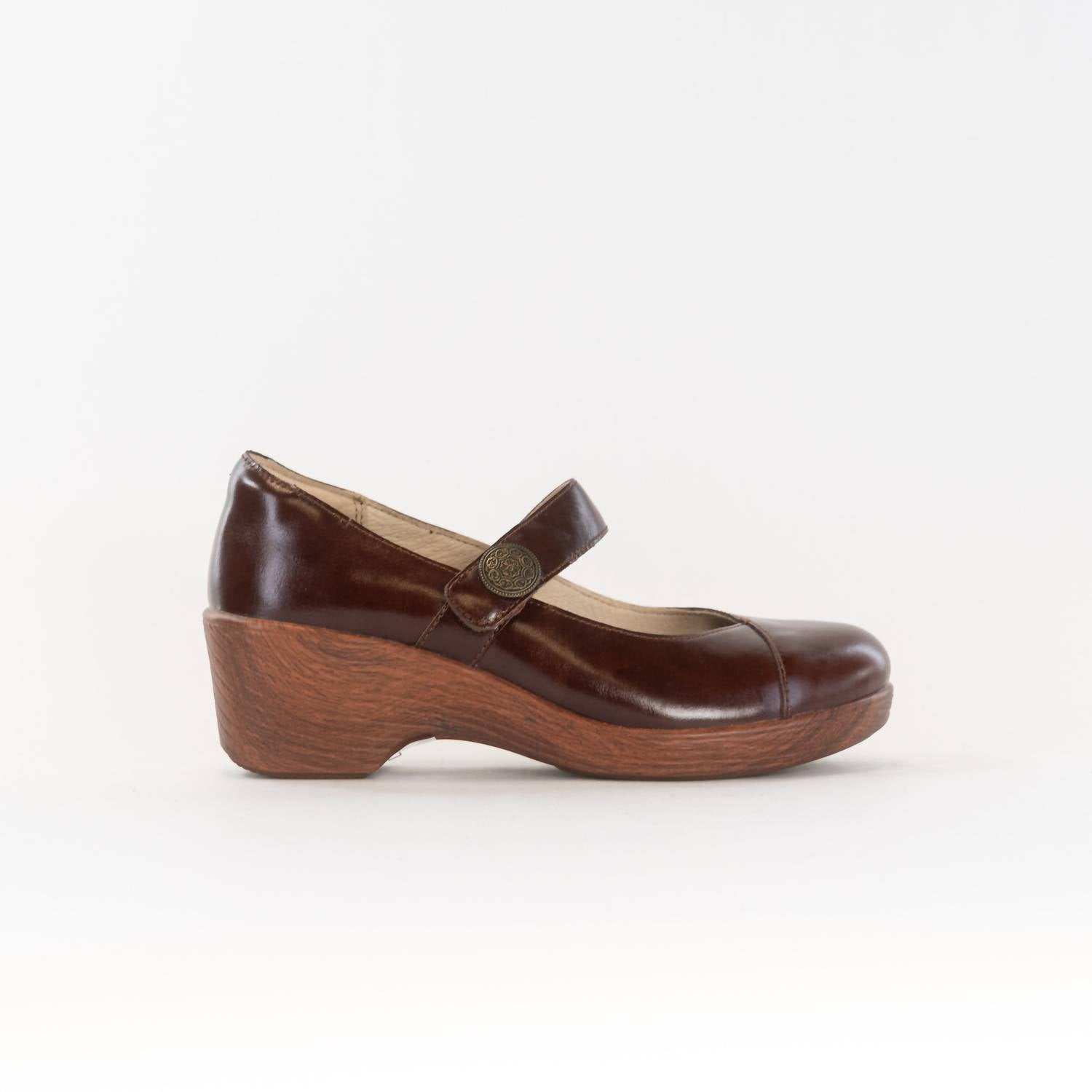 Timeless wedges that will be relevant season after season.Features: Alegria Mary Jane Wedge. Featherweight slip-resistant wood-look wedge bottom. Adjustable hook-and-loop close strap with a decorative metal ornament. A printed microsuede-lined footbed made of polyurethane, cork, and memory foam completes the ladylike story. Slip resistant polyurethane outsole designed for a natural rocker walking motion. Heel height: 2 inches.