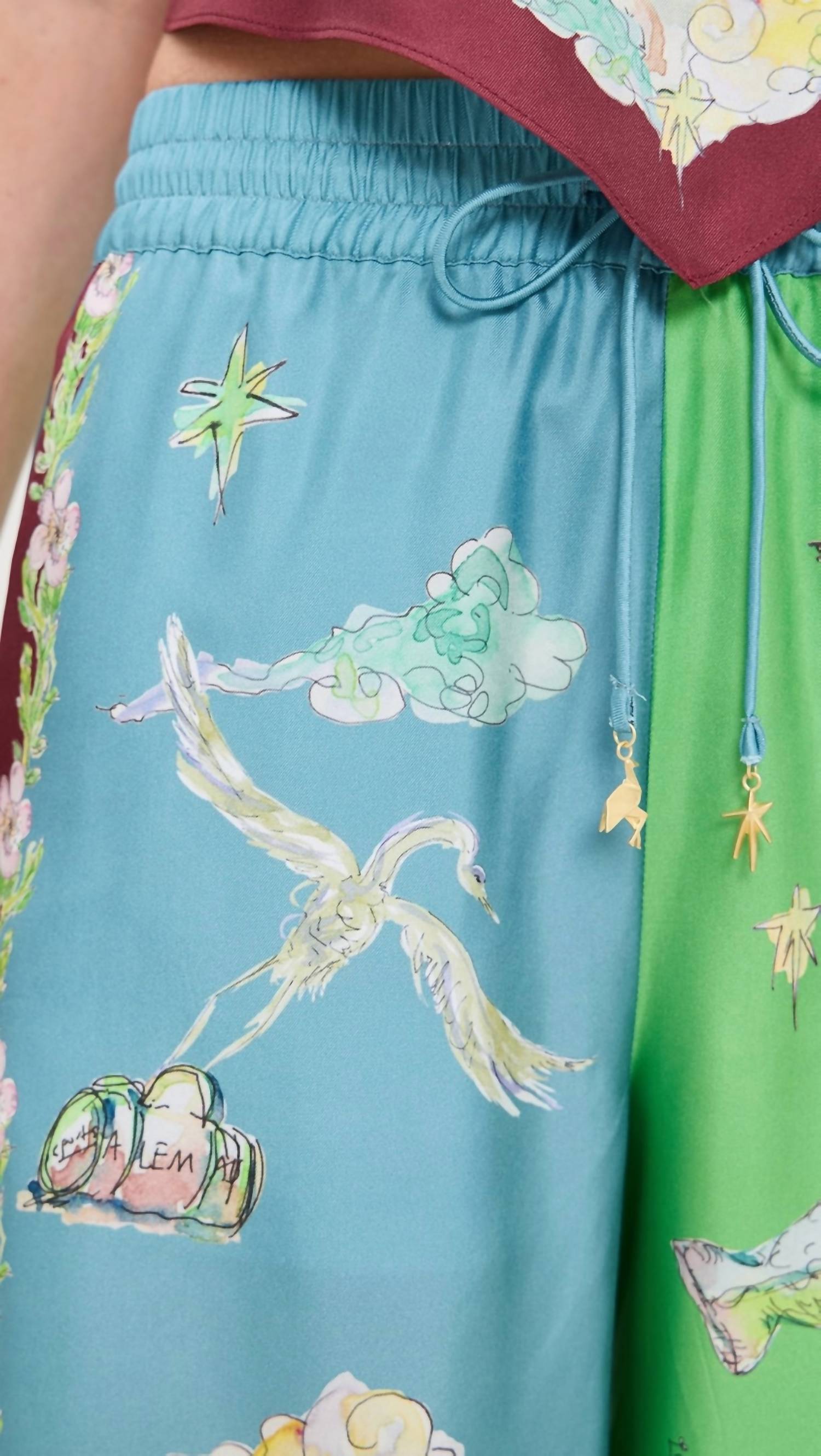 Introducing the ALEMAIS Daria Wide Leg Silk Pants, a statement piece in multi-color designed for both comfort and sophistication. These high-rise, relaxed-fit pants feature a wide leg style with in-seam pockets, and a pull-on closure with bespoke toggle ends. Crafted from 100% Silk Twill, they offer a lightweight feel perfect for Summer vacations or New Year's Eve celebrations. Care for these pants with a dry clean only routine to maintain their luxurious plaid and check pattern. Measurements: 13.5" rise, 29.5" inseam.