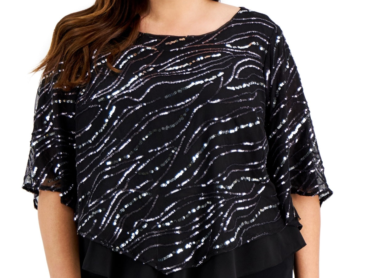 Alex Evenings Women's Sequin Popover Top Black Size 3X