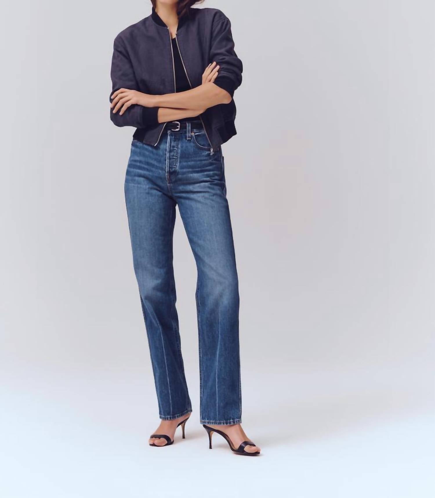 This classic straight leg jean has a perfect fit and goes with just about everything. Elevate your denim collection with the Carla High Rise Straight Jean by Alex Mill, a piece designed for denim enthusiasts who appreciate a snug fit in Vintage Dark Indigo. Featuring a straight leg silhouette, this jean comes with a high rise of 11.5 inches to enhance your stature with a legs-for-days effect. Crafted in the USA from 100% non-stretch cotton, these jeans boast a button closure to ensure a secure fit. Care for these with a simple machine wash and tumble dry, and pair them effortlessly with heels and an oversized blazer for a chic look.