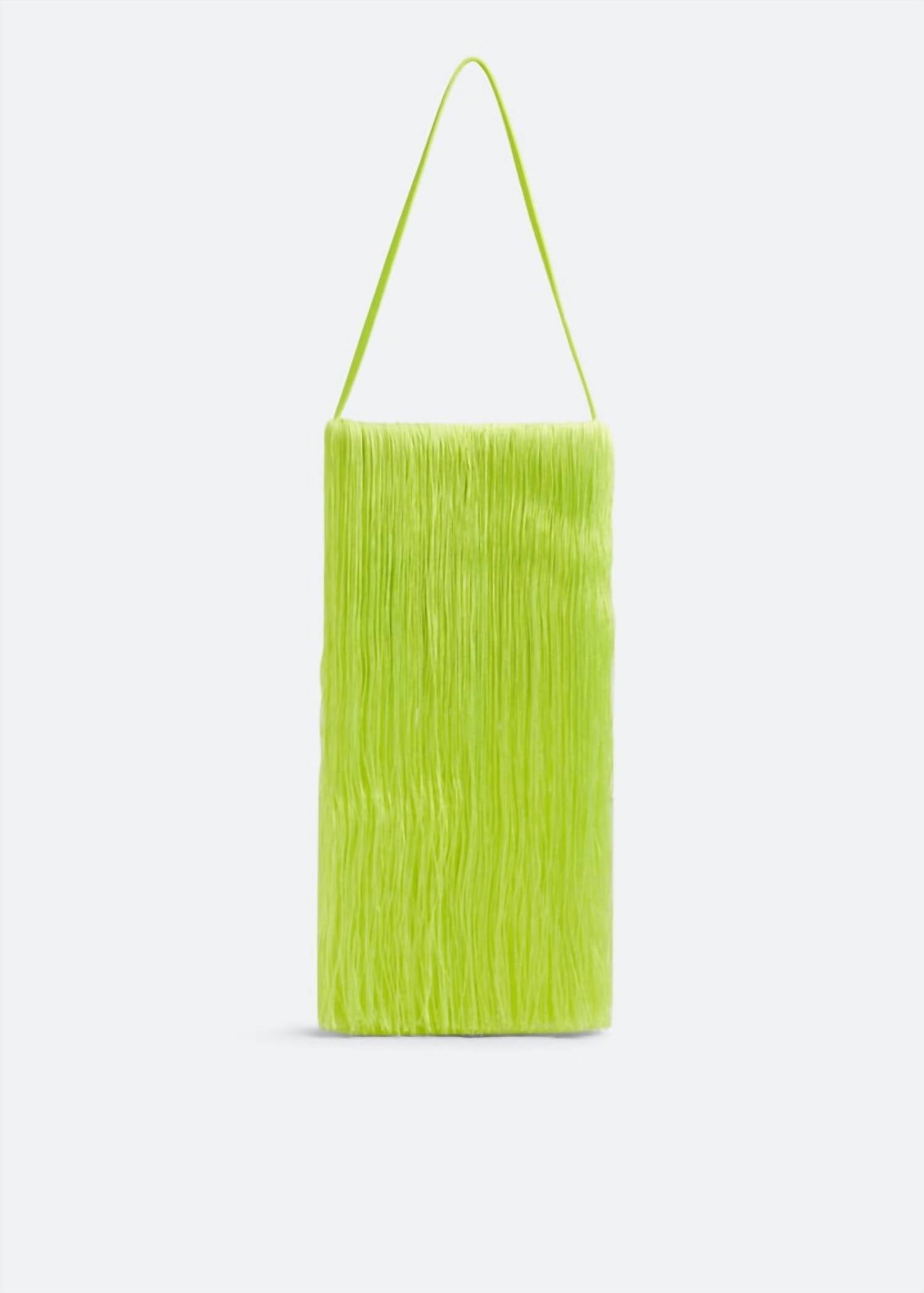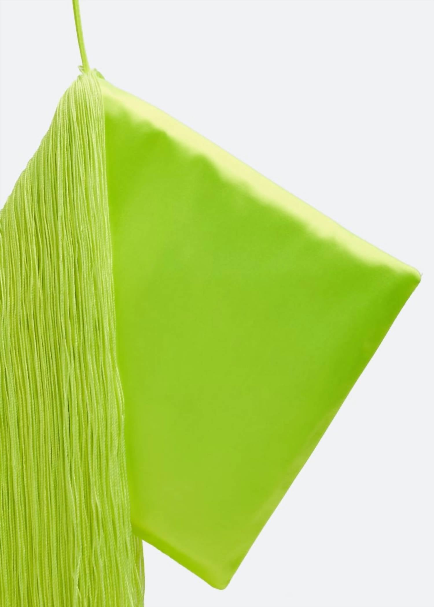 Elevate your style with the Women's Satin Crystal Fringe Shoulder Bag from Alexander Wang, a vibrant neon piece that demands attention. Crafted from a luxurious blend of 50% rayon, 30% polyester, and 20% nylon, this bag features exquisite fringe detailing and a crystal logo embellishment. It includes a single slim shoulder strap with a 9-inch drop and a concealed magnetic closure for easy access to the main compartment. With dimensions of 7.25 inches in width, 7.25 inches in height, and 1.2 inches in depth, this bag is as functional as it is fashionable.