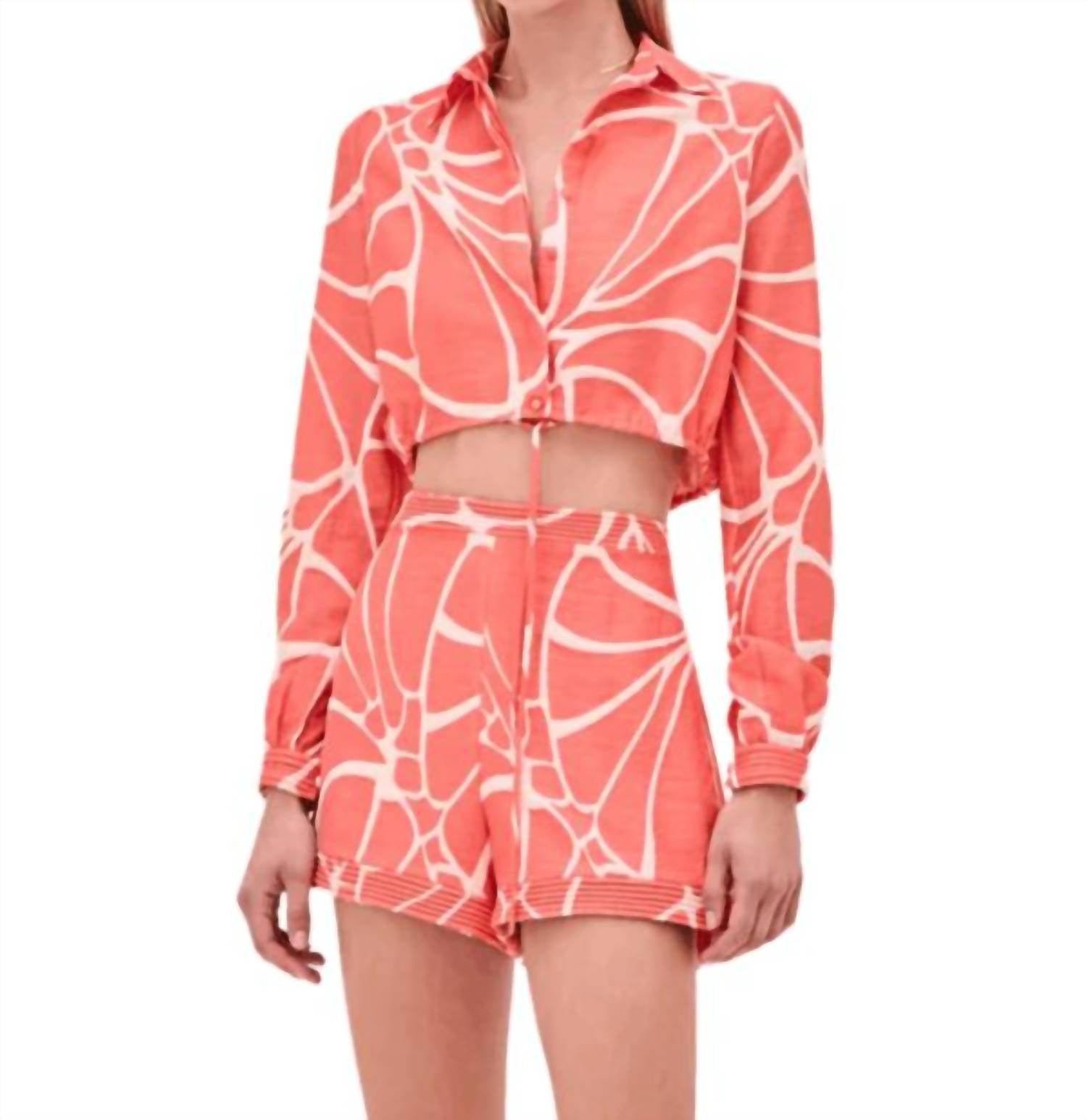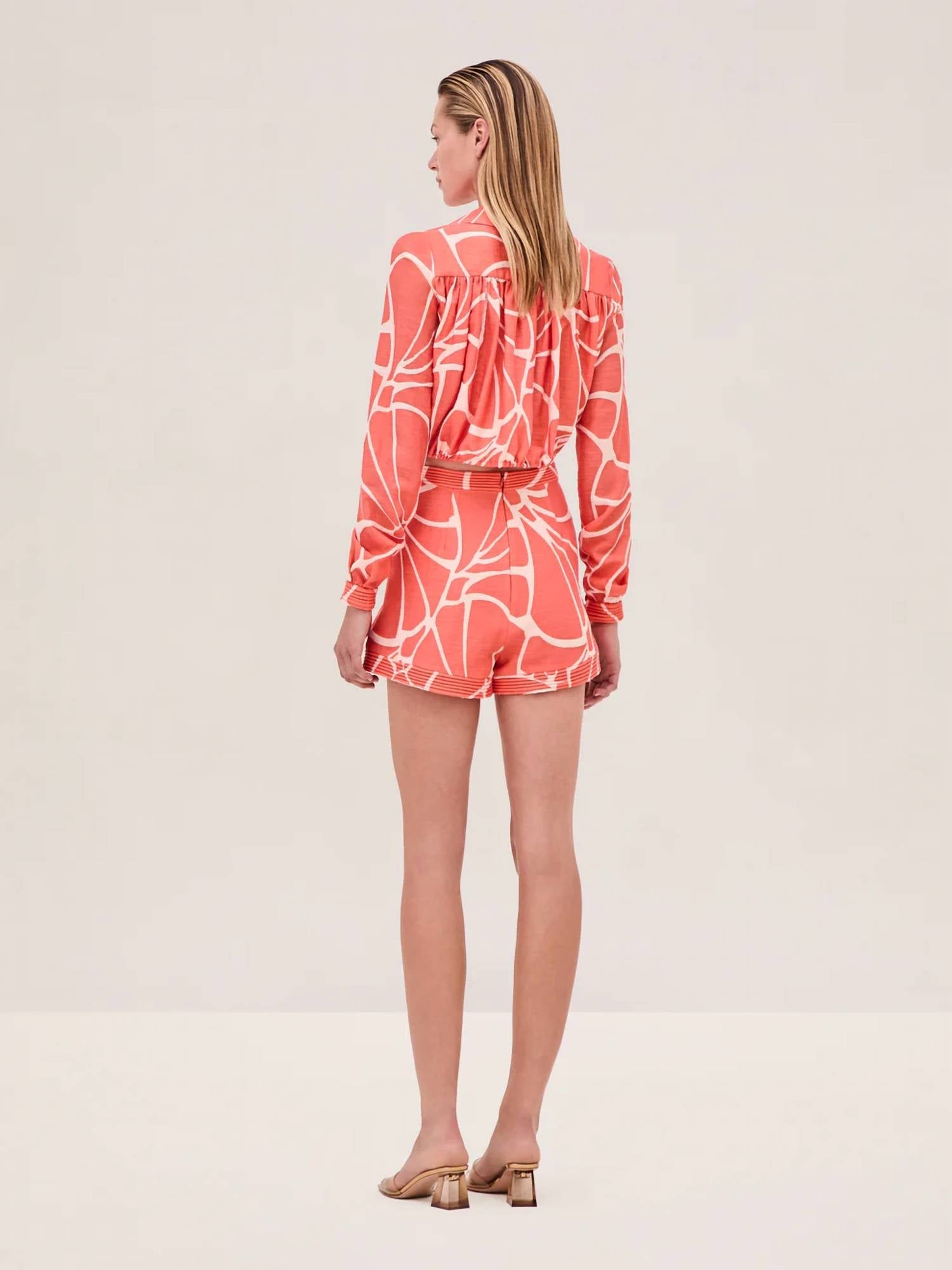 Pair this crop top with your favorite high-waisted jeans or maxi skirt. The ALEXIS Women's Yael Top in vibrant coral is a stunning addition to any summer wardrobe. This patterned crop top embodies a boho chic aesthetic, perfect for vacation settings. Originating from an undefined country, it requires easy care with a simple dry clean. Embrace a breezy elegance with this stylish and comfortable top.