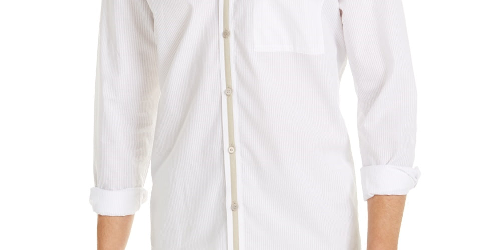 Alfani Men's Band Collar Stripe Button Down Shirt White Size X-Large