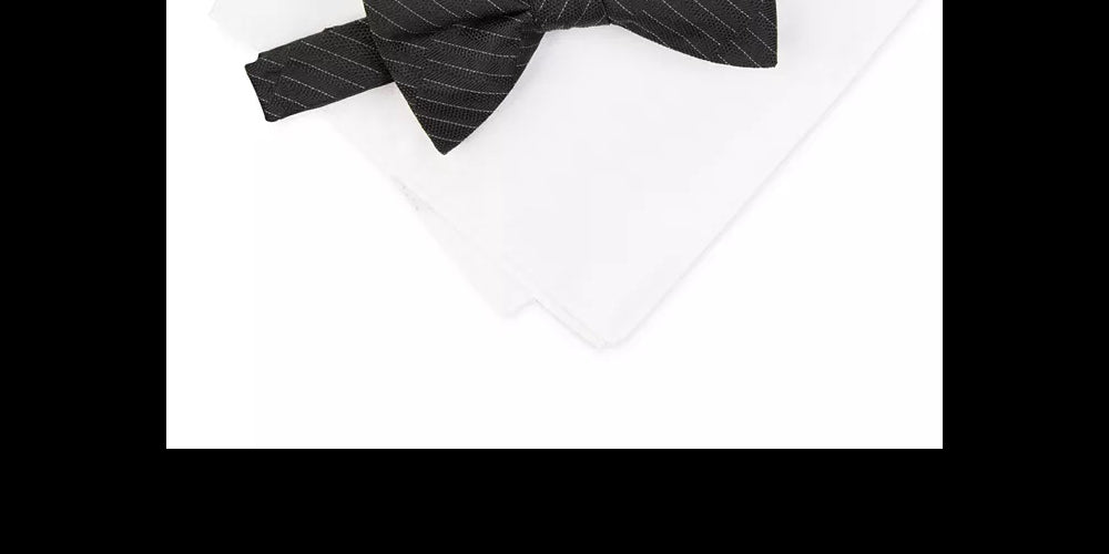 12L x 12W|Pre-tied|All-over stripe detail|Polyester/silk|Dry clean