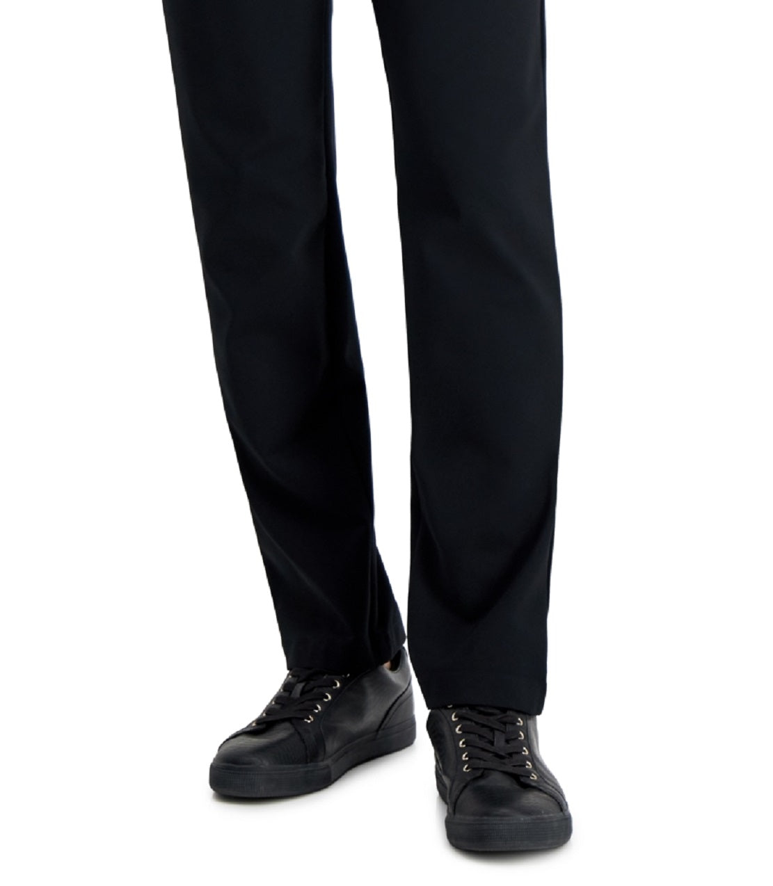Keep things comfortable for casual days with the classic tailoring and unrestrictive feel of these tech pants from Alfani.| Approx. inseam; 32| Regular fit| Zip fly with button closure| Two side hand pockets; two back welt pockets| Contrast back belt loop; contrast trim on back pockets|