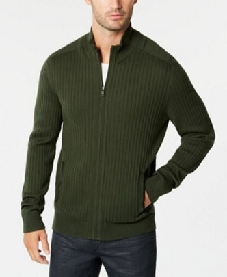 Alfani Men's Ribbed Full Zip Sweater Classic Fit Green Size XX-Large