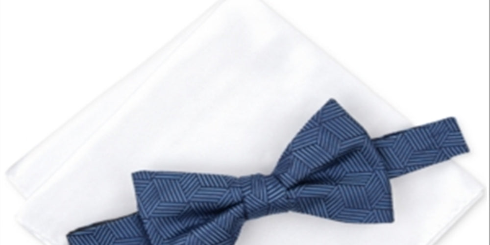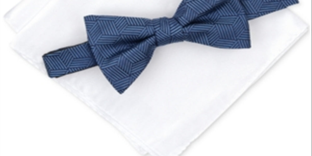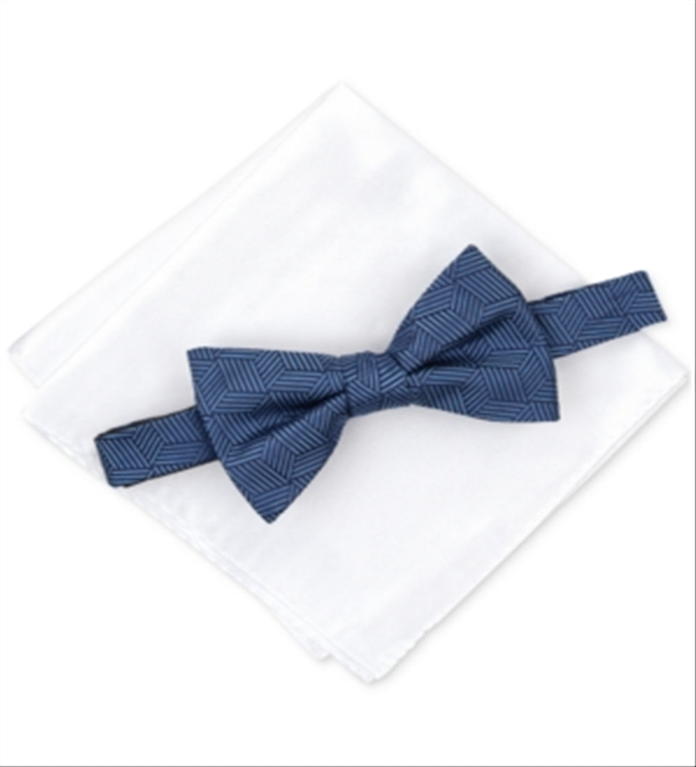Alfani Men's Shubert Satin Pocket Square Bow Tie Blue Size Regular