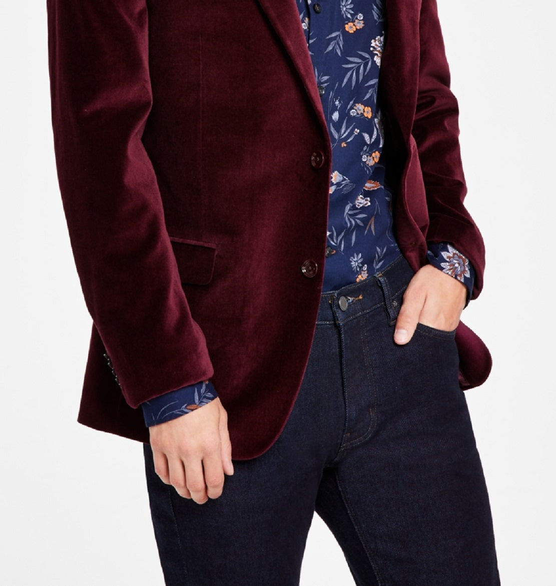 Alfani Men's Slim Fit Solid Velvet Blazer Red Size 40