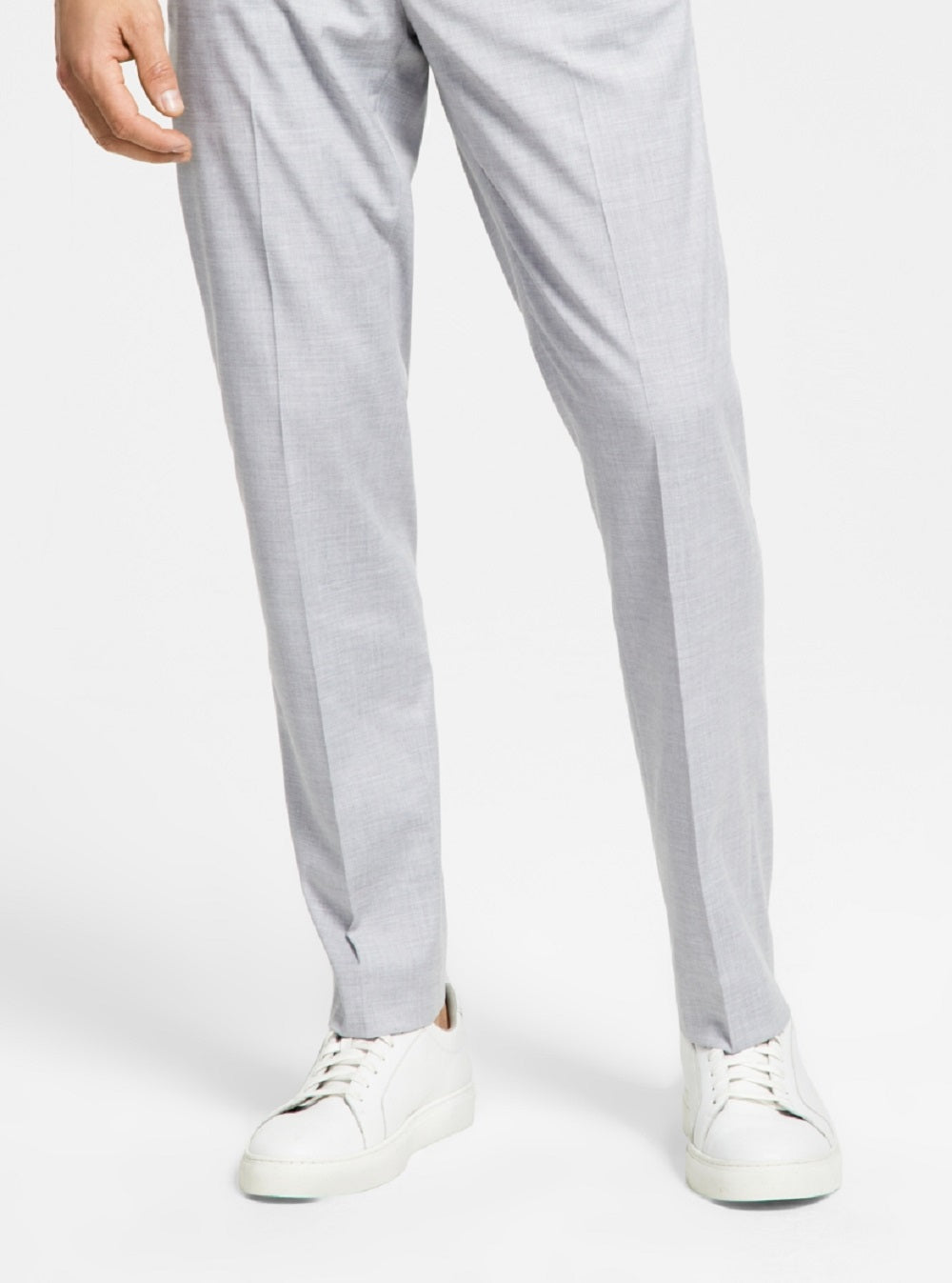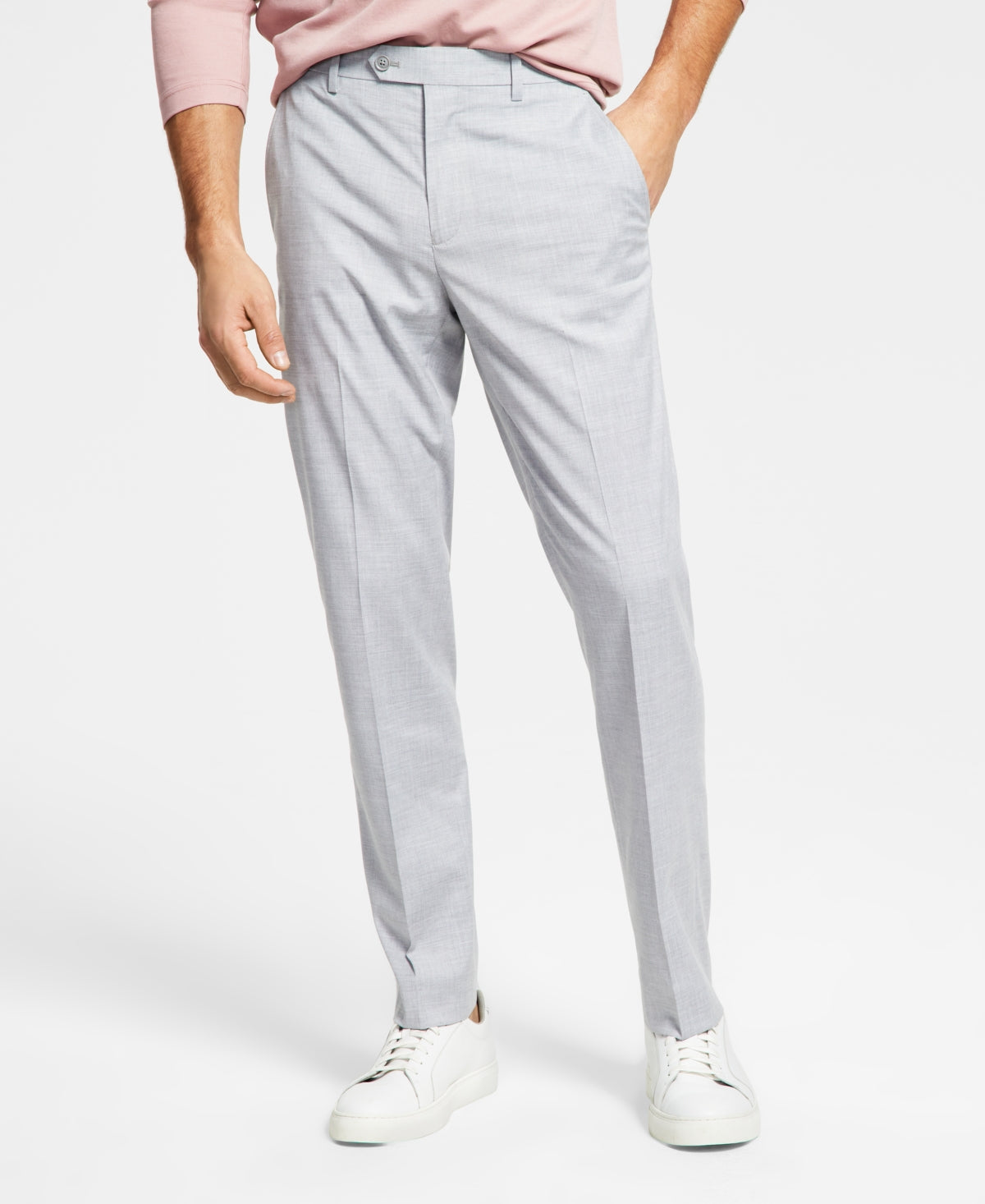 Bring a more modern feel to your sophisticated essentials with the refined slim fit of these versatile light gray suit pants from Alfani