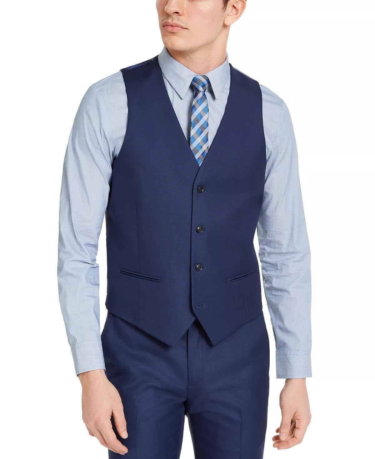 Alfani Men's Slim Fit Stretch Solid Suit Vest Blue Size Medium