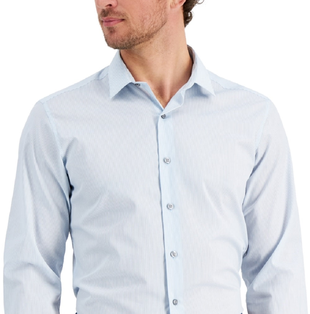 Alfani Men's Slim Fit Stripe Dress Shirt Blue Size Medium