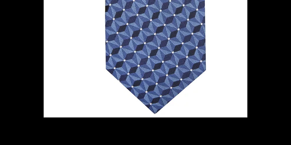 Slim design|2-3/4" wide|Geometric pattern|Silk/polyester|Dry clean|Imported